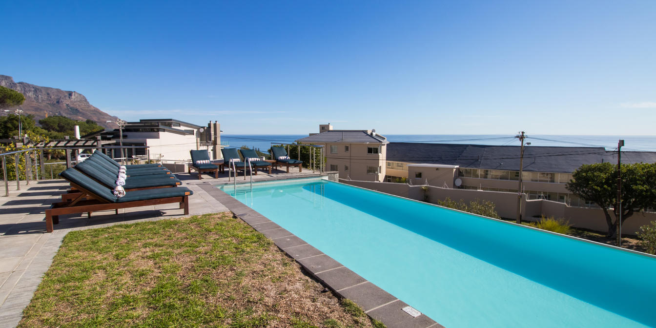 Two swimming pools on an expansive terrace provide refreshing dips and sun-soaked relaxation while contemplating the delights of splendid ocean views.