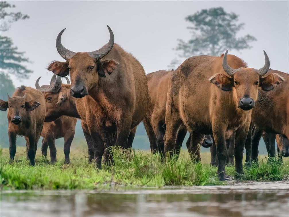 Enjoy a sundowner and a drink as Forest Buffalo and Harnessed Bushbuck walk by. Other regular visitors include Forest Elephants, Guereza colobus monkeys and a variety of birds.