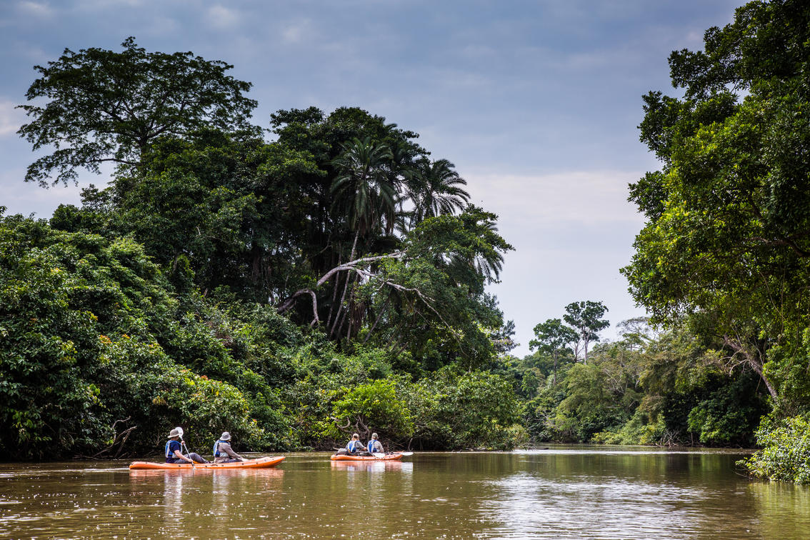 Arrive to Lango Lodge by kayak on the Lekoli River