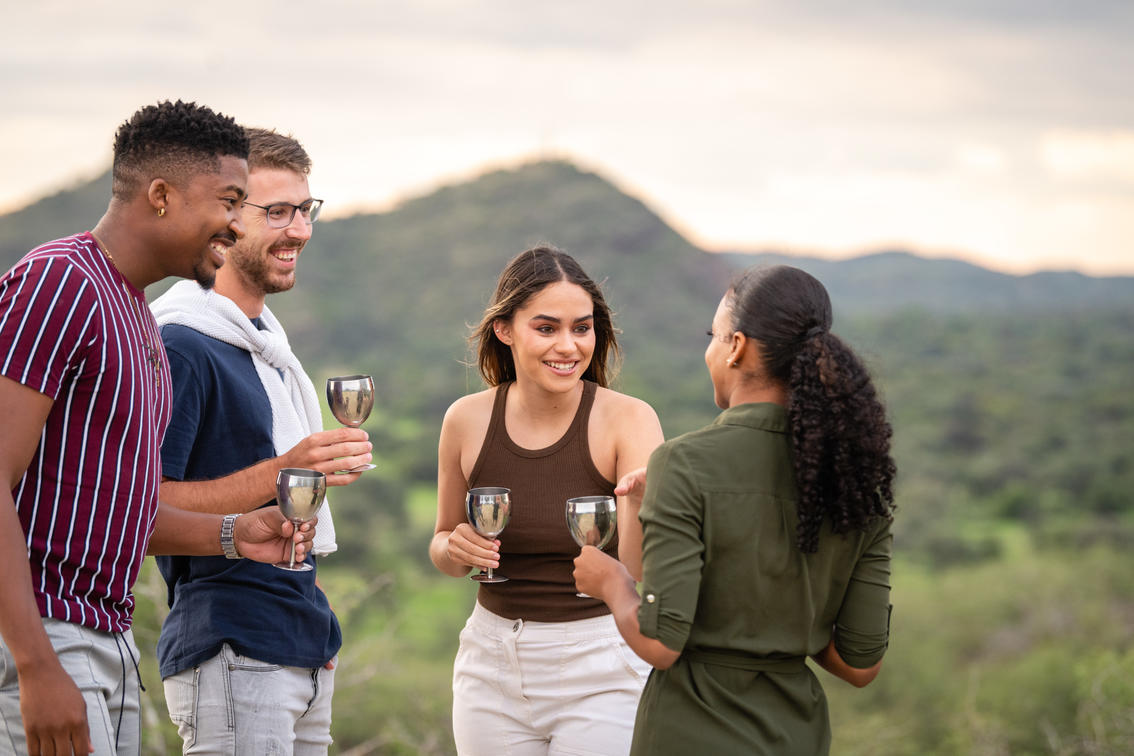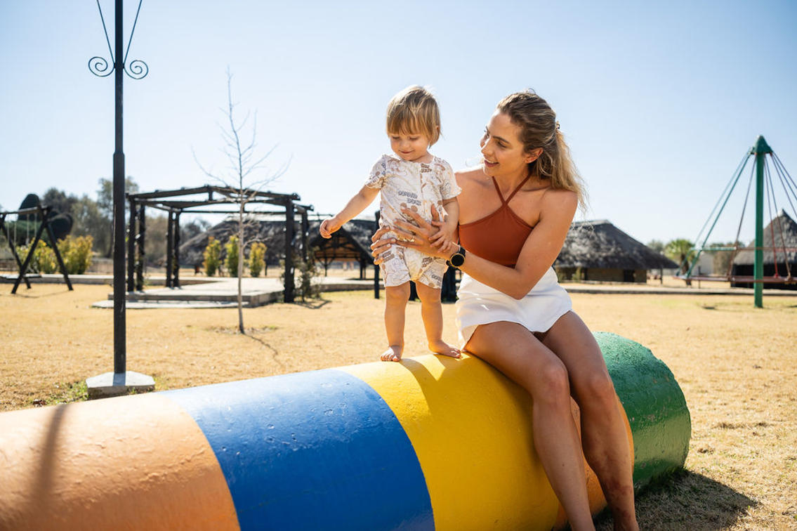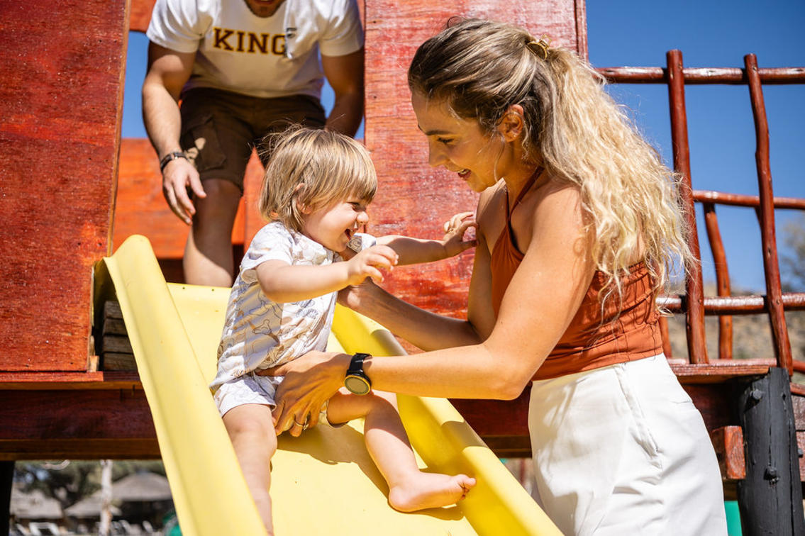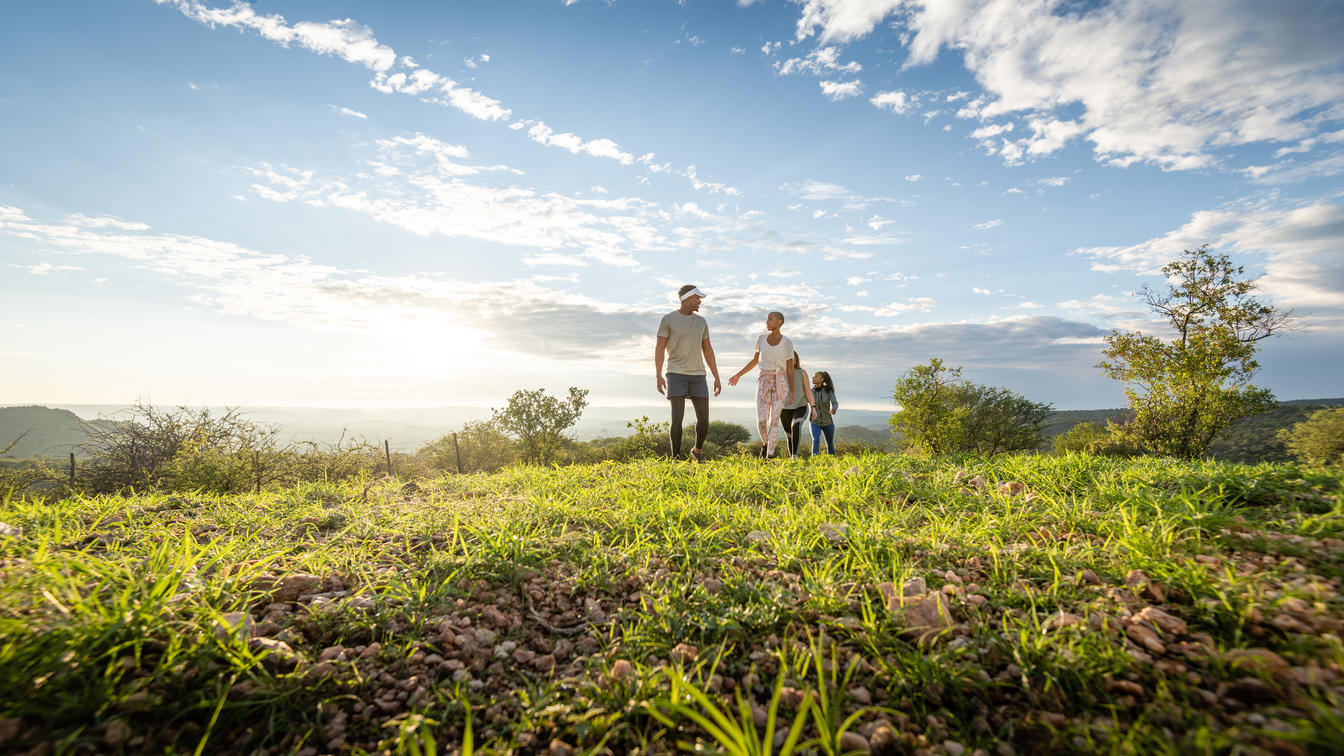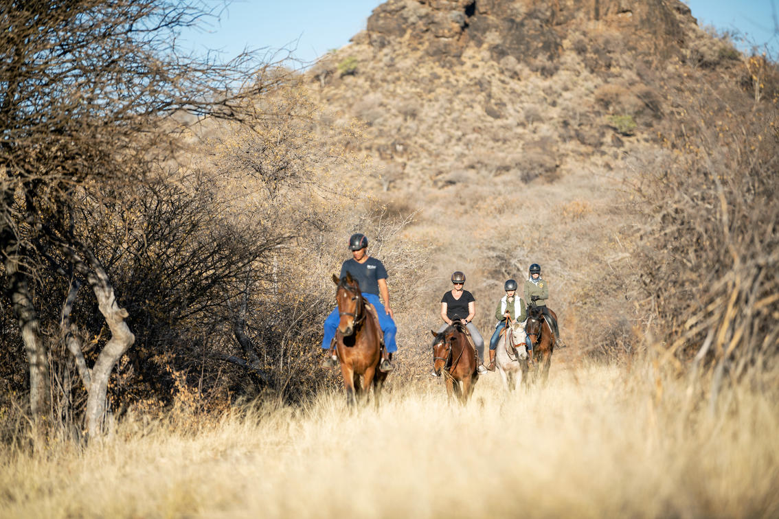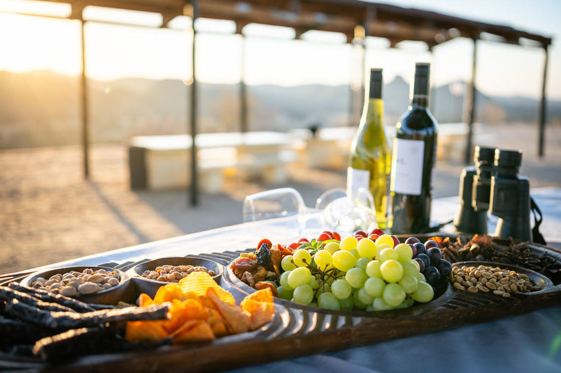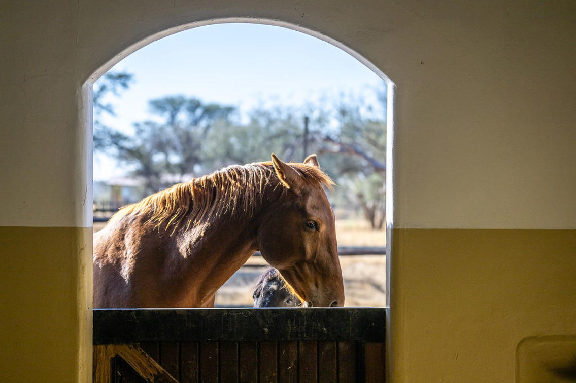 One of the estate’s major attractions is a sundowner drive to Hilltop, where guests can enjoy a stunning 360° view over the Otjihavero Mountains and watch the sun set with sundowners in hand. They also get to experience what life was like on a traditional Namibian Farming and Game Estate in years gone by, with a morning or afternoon nature game drive through the separate 2 000 hectare nature reserve, along the Swakop River. Wildlife found here includes giraffe, blue and black wildebeest, oryx, kudu, hartebeest, eland, warthog, baboon and smaller antelope species such as the steenbok. The riverfront is a birder’s paradise.