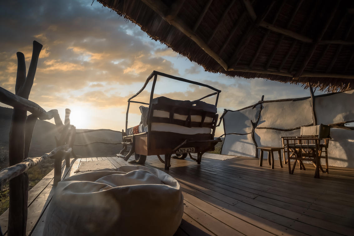 Elewana Loisaba Star Beds has 3 ensuite Double Star Bed Platforms. Each comprises a main area with wardrobe, seating area and safe which sits under a thatch roof. A large balcony extends out, and the Star Bed can either sit under the thatched roof of the accommodation, or be wheeled out to rest under the night sky.