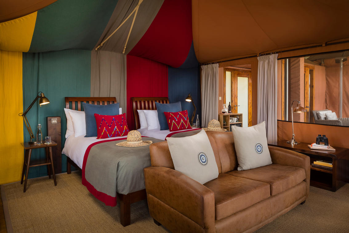 2 of the 12 Tented Suites can be configured to sleep a family of four, with a king four poster master bedroom and a living room converted into a 2nd twin bedroom for two children beds.