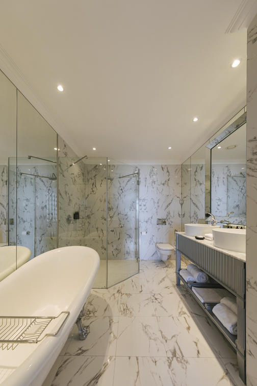 The suites are between 45m² – 54m² with a 27m² balcony. Spacious bedroom with lounge area and en-suite bathroom with large bath and rain shower.Suites have a Smart TV, Marshall speaker, Nespresso coffee machine and refreshment bar.