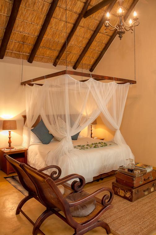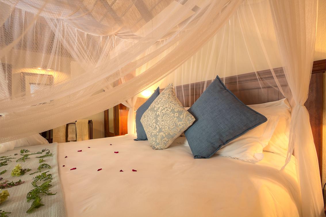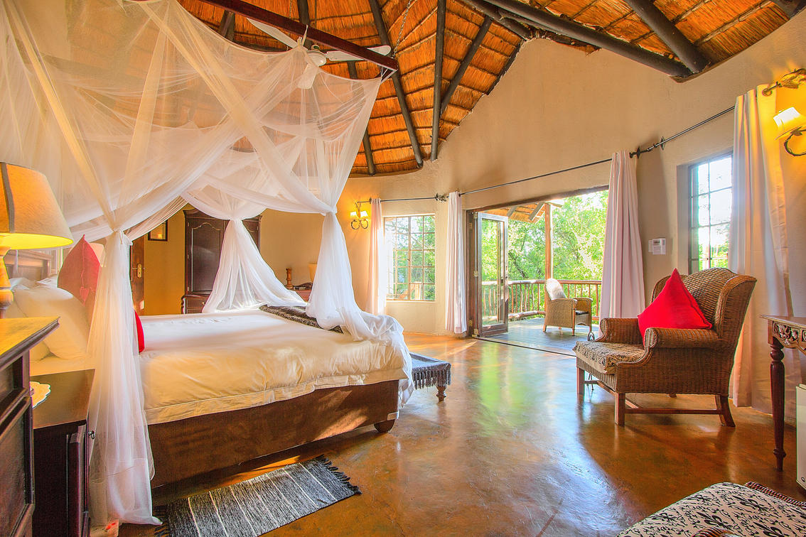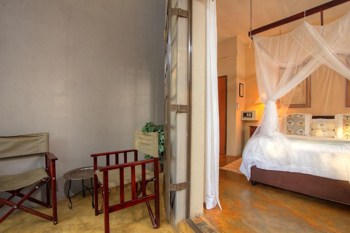 Spoil yourself with old charm and luxury. This beautiful room has a four-poster queen size bed, full en-suite bathroom with bath and shower, and a private balcony. The décor depicts an African charm & a feeling of romance.