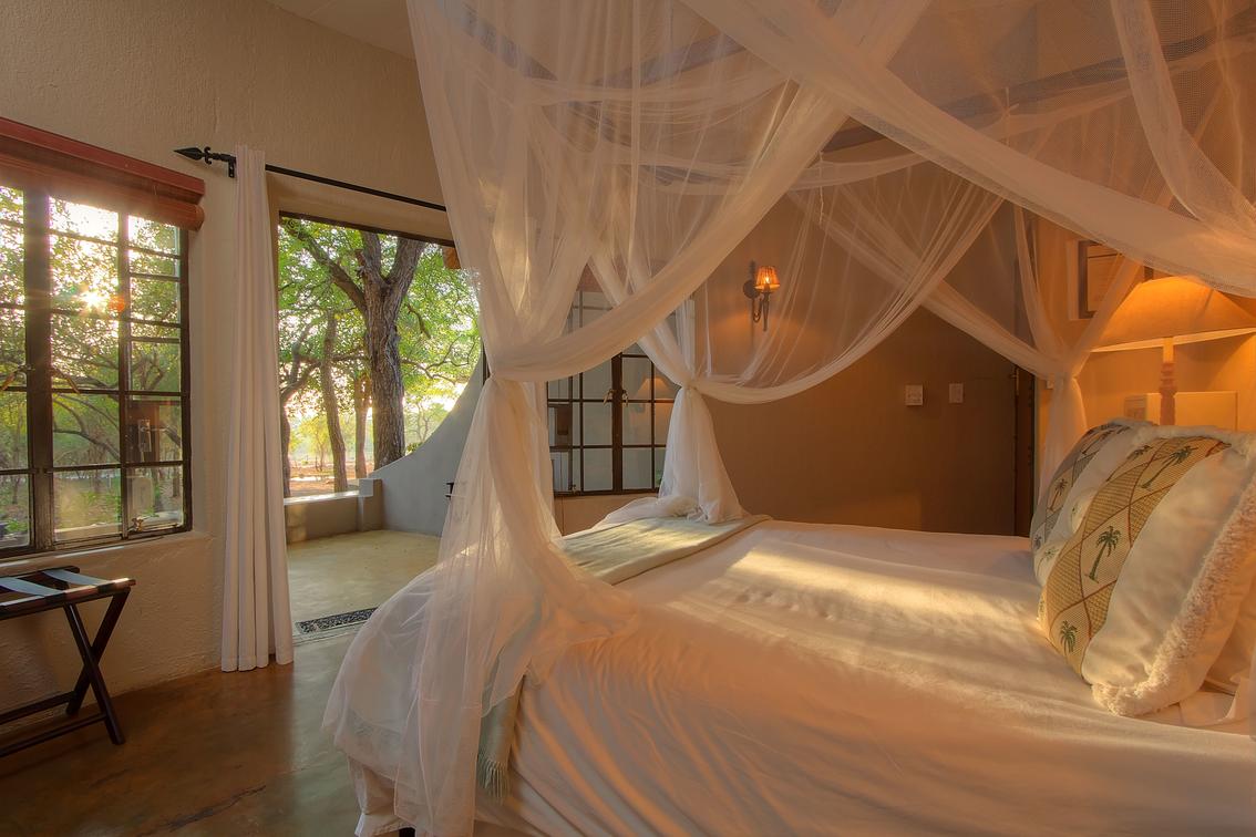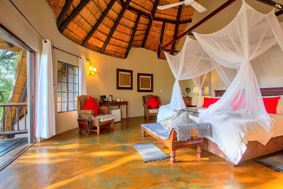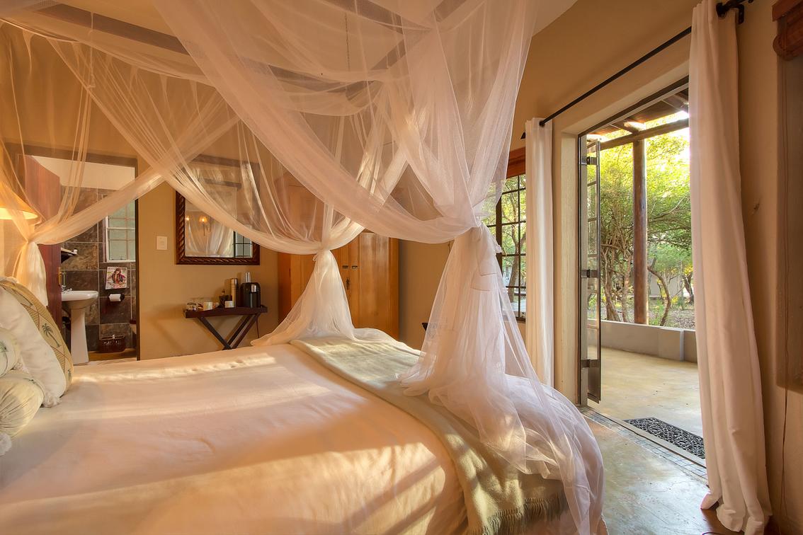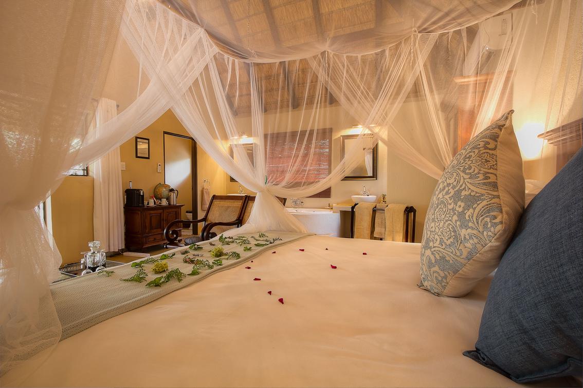 Spoil yourself with old charm and luxury. This beautiful room has a four-poster queen size bed, full en-suite bathroom with bath and shower, and a private balcony. The décor depicts an African charm & a feeling of romance.