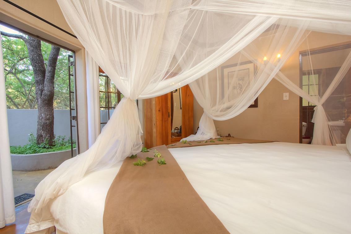 This spacious suite with King or Twin beds comes with an en-suite bathroom with shower & spa bath. Huge sliding windows opens up the room with great views of the bushveld. Ample space for children 12 years & under to share with parents. Max 2 children under 12.