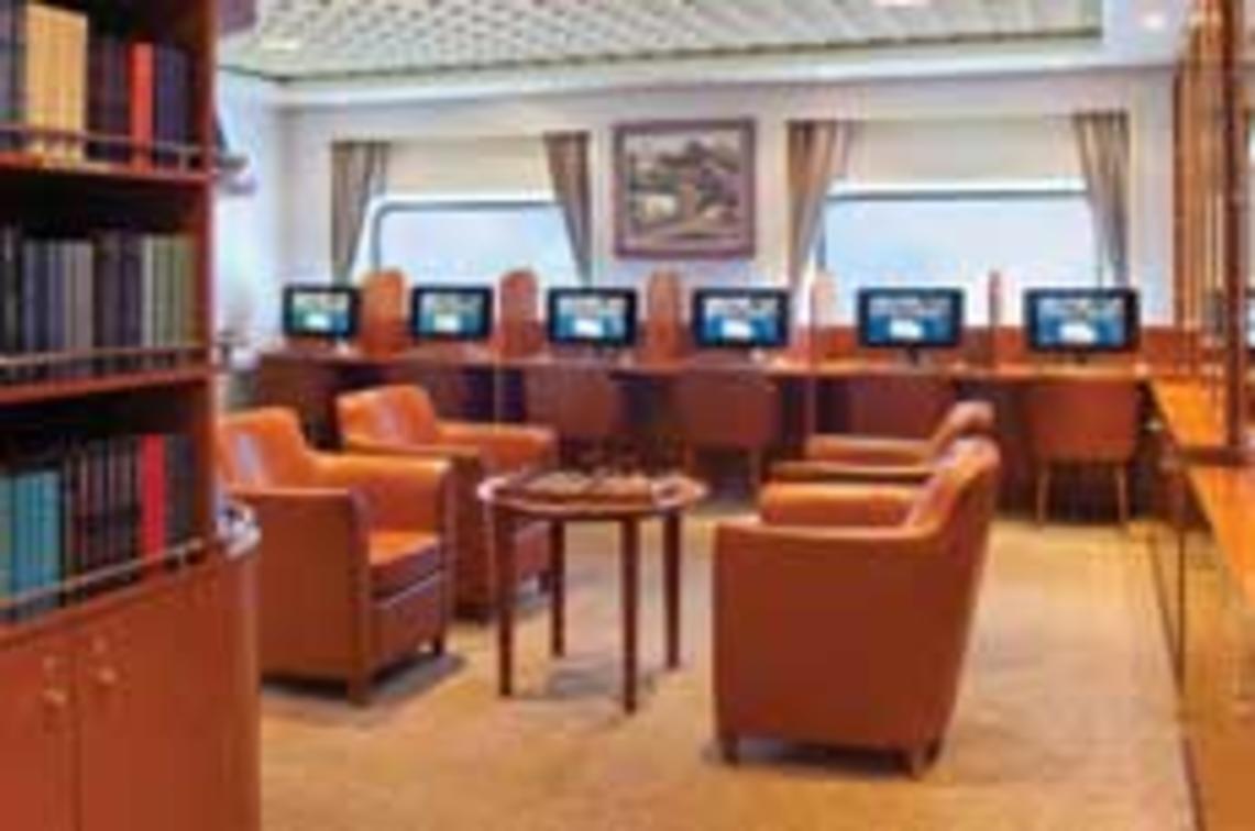 Well-stocked and exceedingly comfortable, the Library offers a most civil setting for reading and relaxing. Curl up with a classic novel, play a strategic game of chess or borrow a DVD from our library to watch in the privacy of your suite. Stay connected while sailing the seven seas in the staffed Internet Café, which is open round the clock and our ships have WiFi throughout for guests with their own laptops.