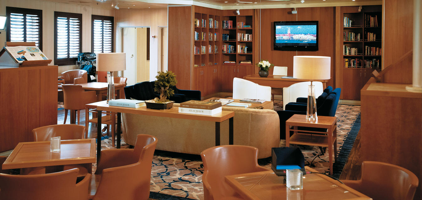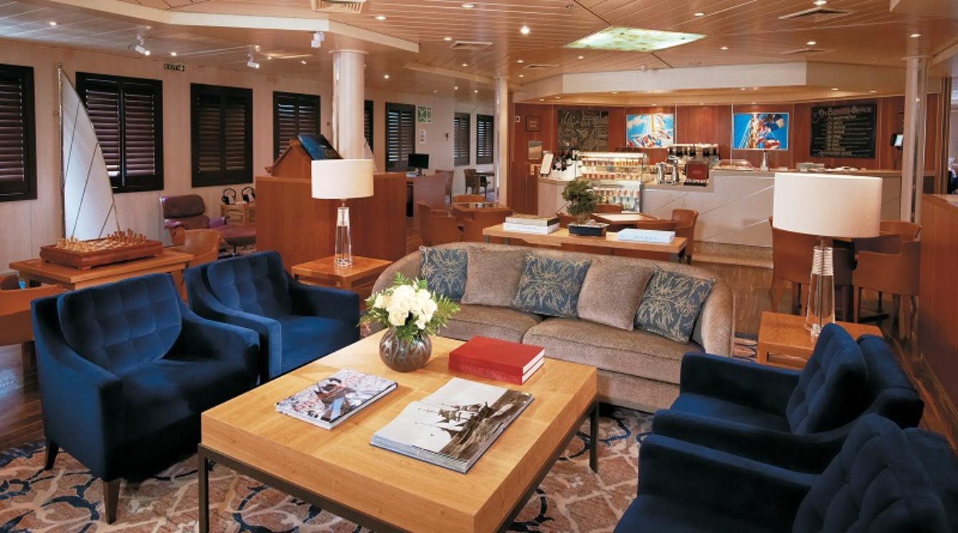 Relax in the ship's social hub, a multi-purpose area comprising of internet cafe, espresso bar, eight computers and Wi-Fi access for your laptop, a large flatscreen TV with a cluster of comfy couches and chairs, and a library of books, CDs, games and DVD's to choose from.