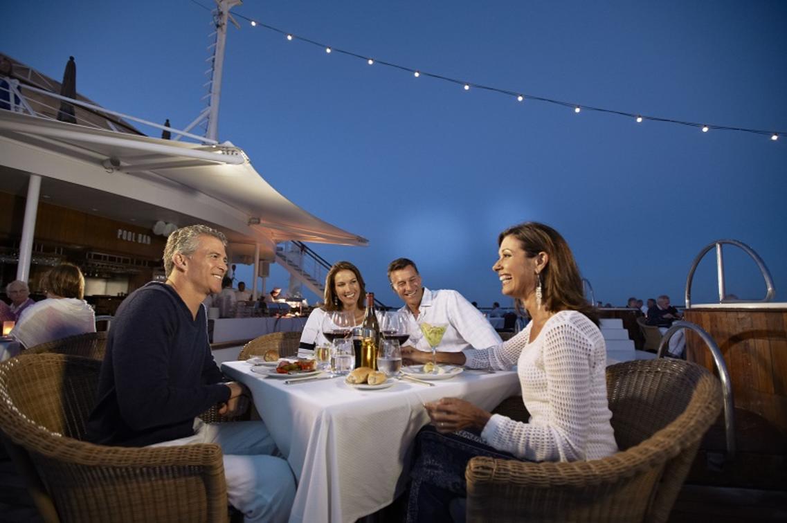 For dining under the stars, make a reservation for Candles, which features steaks and skewers.