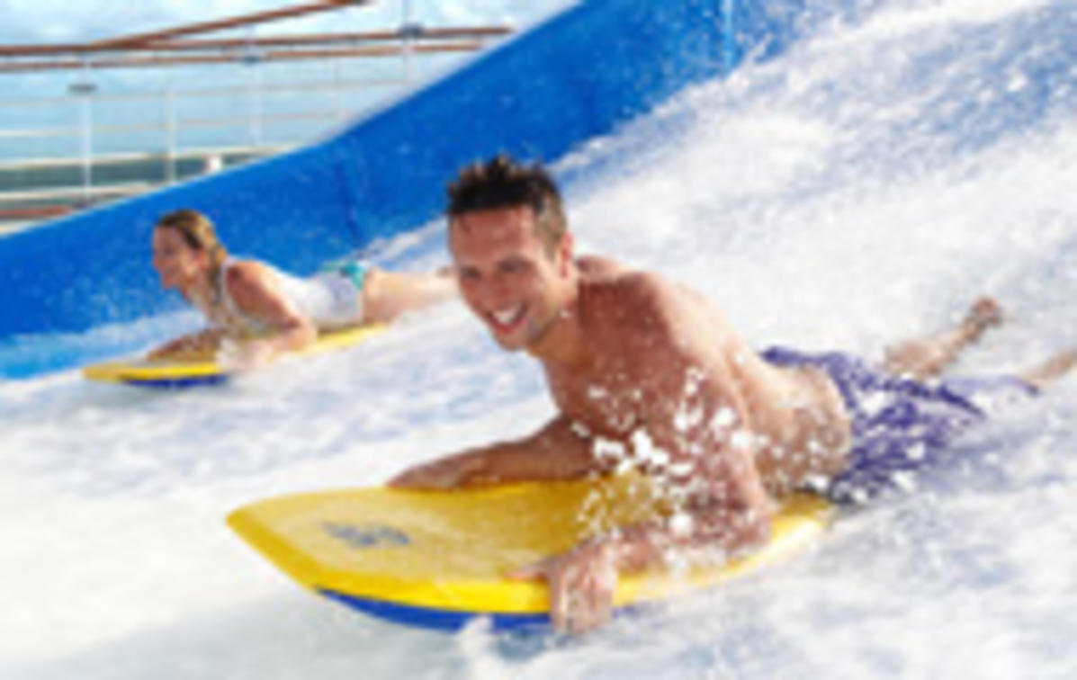 Salads, soups, sandwiches and burgers, plus desserts and soft-serve ice cream served near the FlowRider surf simulator.