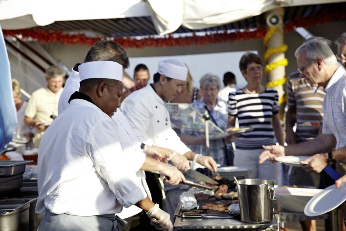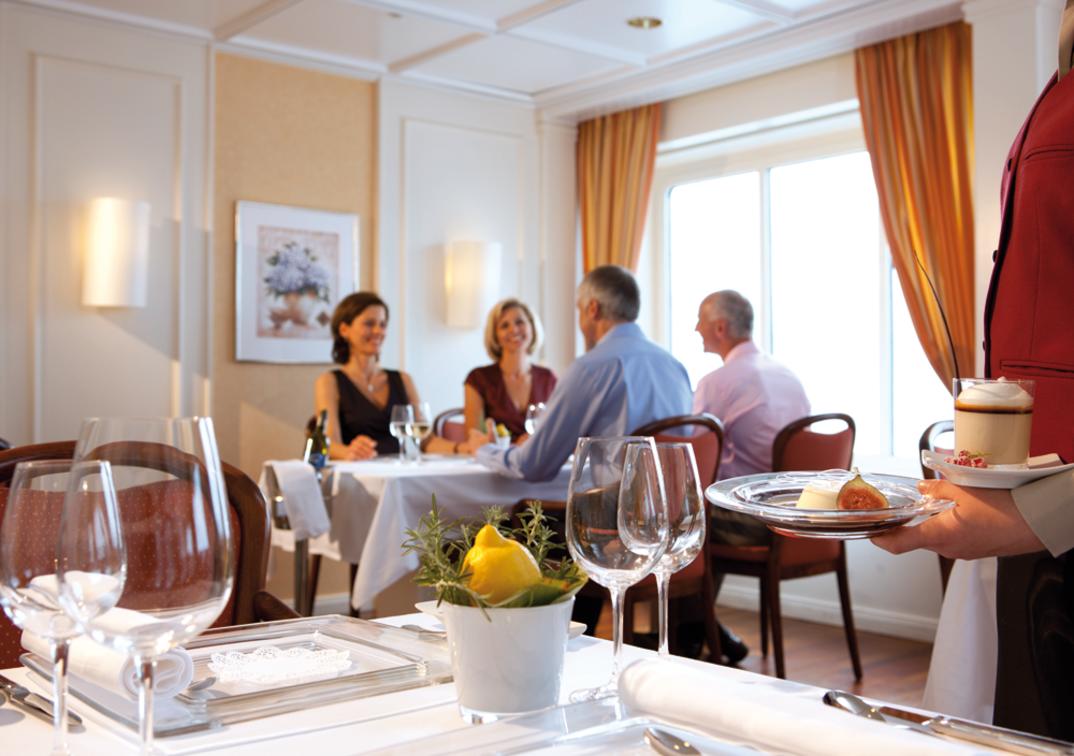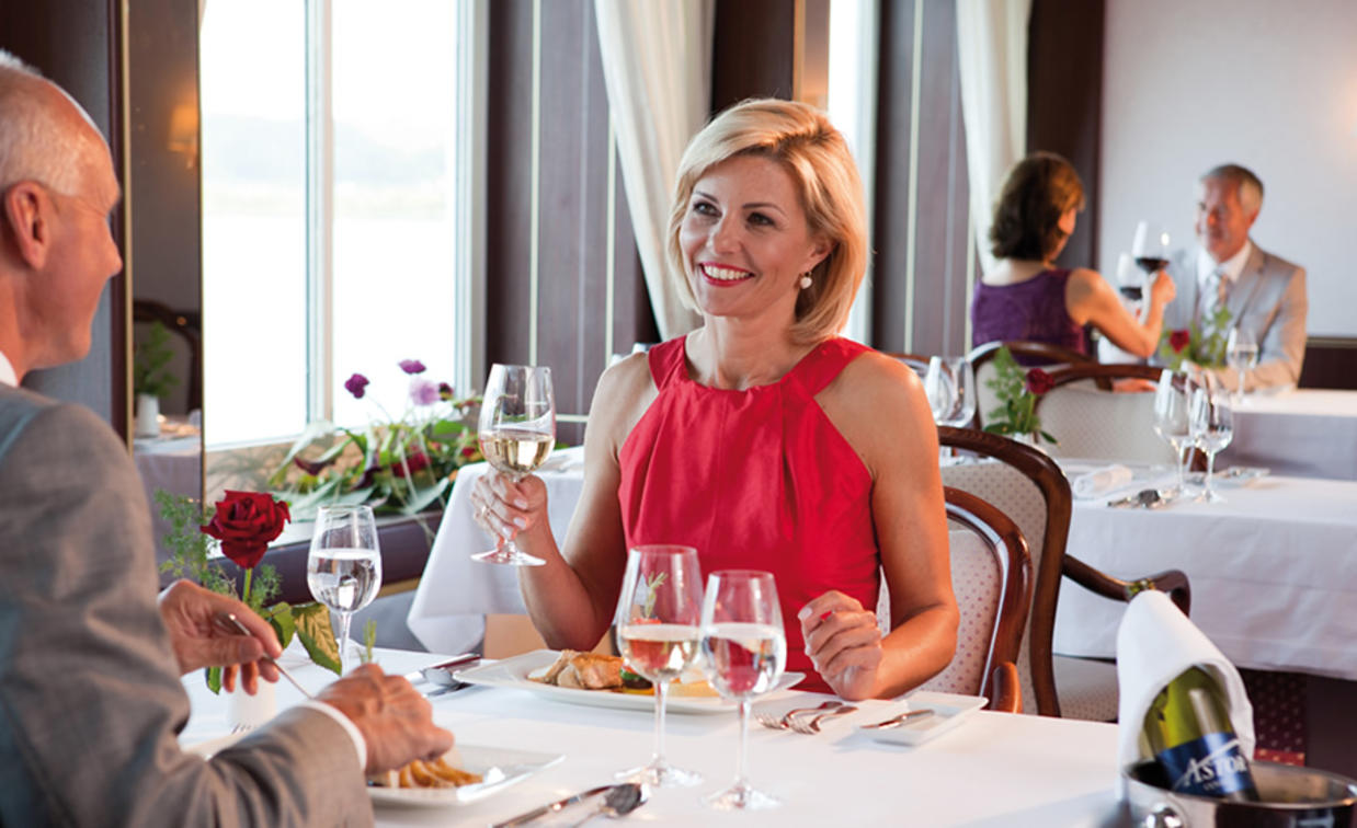 Food is always one of the many highlights of cruising. Whether you are enjoying a pool deck buffet, a relaxed lunch in the Übersee Club or dining in the magnificent Waldorf Restaurant, our superb chefs on board Astor will not disappoint you. You will also have the chance to dine in the intimate 20 seat Toscana or Romantic speciality dining rooms at no additional charge. Your evening meal starts with an appetiser followed by a delicious soup and a light salad. Main courses range from appetising seafood, mouth-watering rack of lamb, medallions of beef, escalope of veal, chicken chasseur, Italian pastas, Asian stir fries, and traditional roasts – and that’s just a small selection of the array of dishes available for you to savour. Tasty vegetarian meals to tantalise your taste buds are featured on every menu, as well as healthy options. Finish your meal with a cheese platter, fresh fruit or, if you are unable to resist, try one of the delicious desserts. The variety is endless! A selection of fine wines are available to complement your meal.