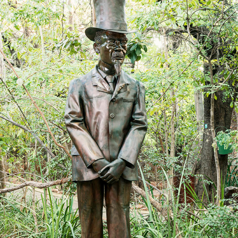Each memorial features an impressive detailed sculpture of the personality it honours. All the sculptures are the work of renowned sculptor, Adam Madebe. Adam Madebe was born in Bulawayo, Zimbabwe, in 1954 and currently lives and works in Johannesburg. He has had a long career in the arts and is now widely considered to be Zimbabwe's most famous indigenous sculptor in metal, winning many awards for his works, including the notable President’s Award for Excellence in 1994.