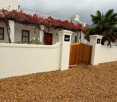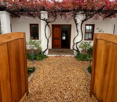Charming 3-Bedroom Home with Private Pool & Garden in Central Franschhoek Located just a 5-minute walk from Franschhoek’s top restaurants, shops, galleries, and the Wine Tram, d’Vine Maison offers a luxurious and tranquil retreat in the heart of the Cape Winelands. This beautifully appointed 3-bedroom, 3-bathroom maison features elegant interiors, spacious living areas, and a completely private garden oasis with a swimming pool, covered patio, and braai/BBQ area. Surrounded by fragrant roses, grapevines, and stunning mountain views, the garden is ideal for outdoor dining and relaxation. Two bedrooms are located in the main house—one with a private en-suite bathroom and direct access to the garden and pool. A third bedroom is detached with a private entrance, perfect for guests seeking extra privacy. All bedrooms are air-conditioned and offer ample space and comfort. The home features an open-plan kitchen, dining area, and two cozy lounges with a fireplace, Netflix TV, and free Wi-Fi. An 8-seater dining table makes it ideal for family meals or entertaining. Additional amenities include a secure garage, ample parking, and a solar power system with inverter and battery backup, ensuring continuous comfort during loadshedding. d’Vine Maison is perfect for families, friends, or couples seeking an unforgettable stay in Franschhoek.
