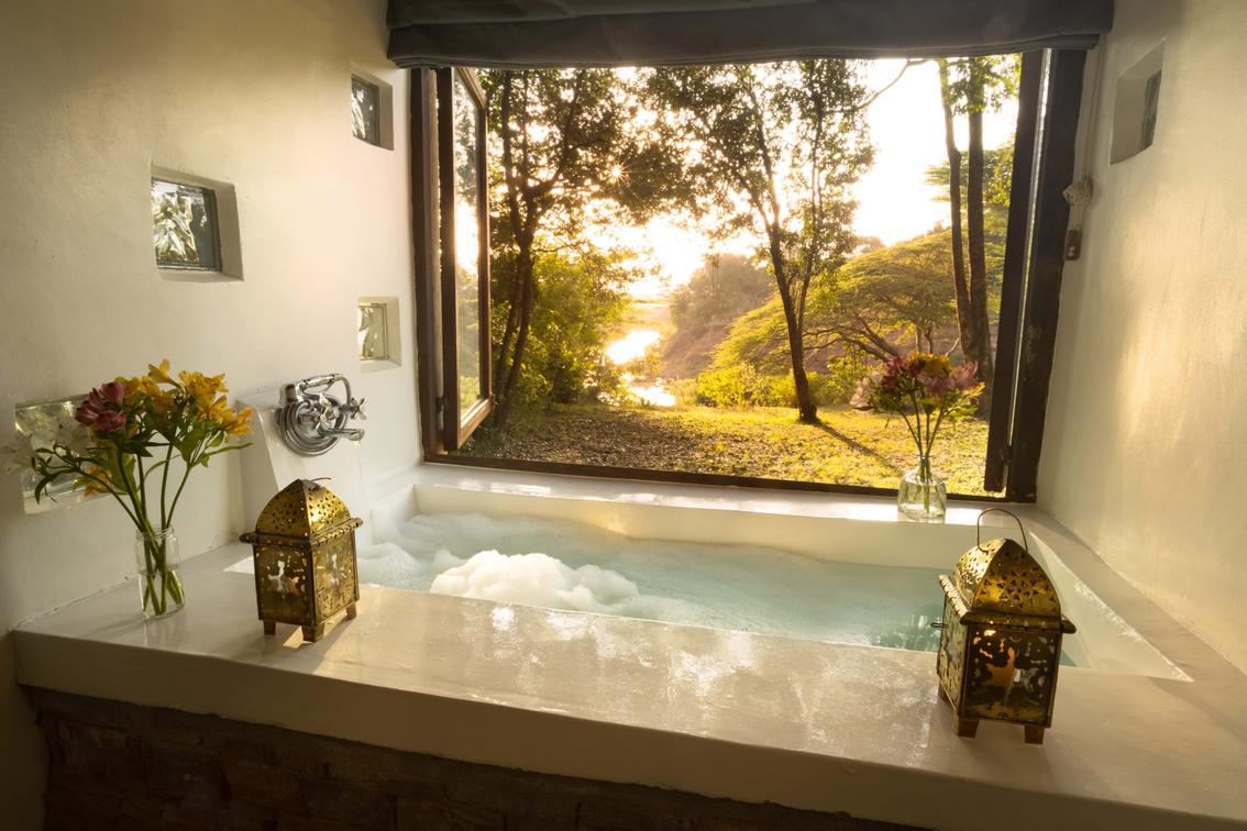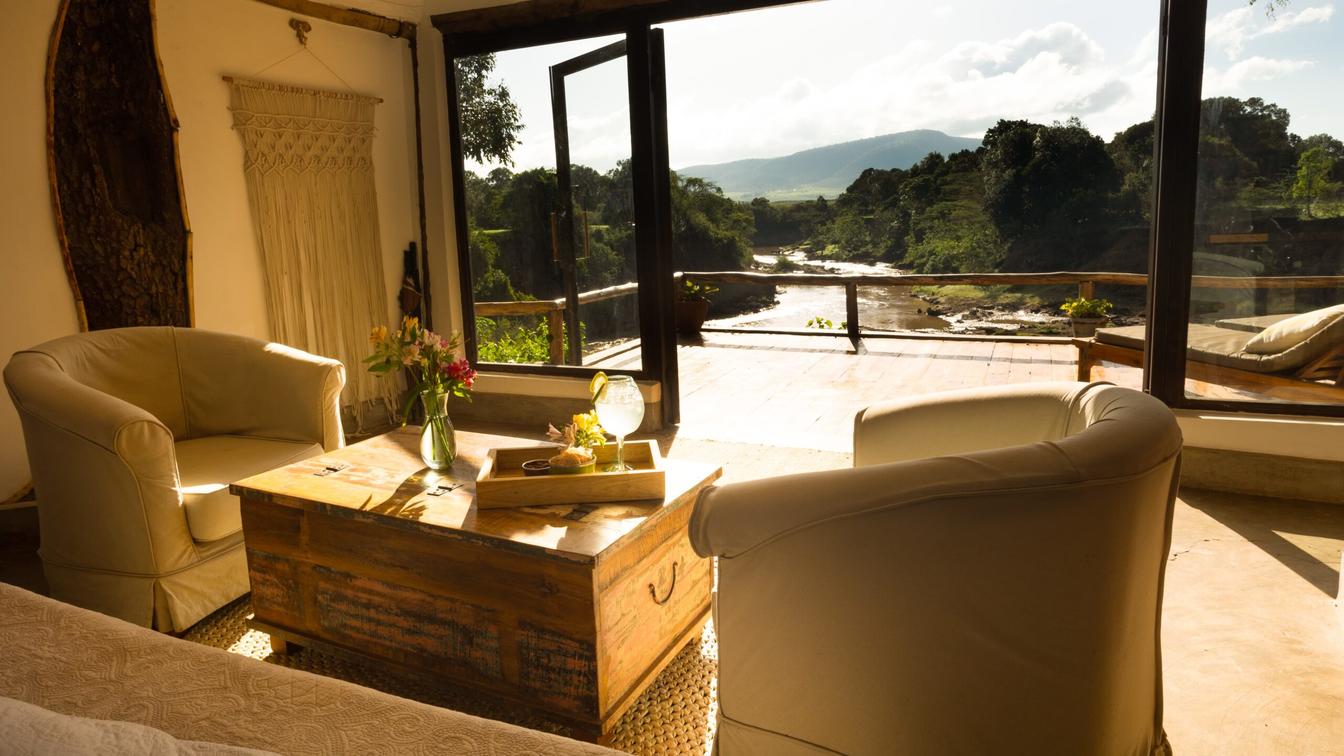 Set in a beautiful spot in the shade of huge leafy trees on the banks of the Mara River, and with its own huge verandah and bath overlooking the river, this is the perfect room for a romantic safari stay.