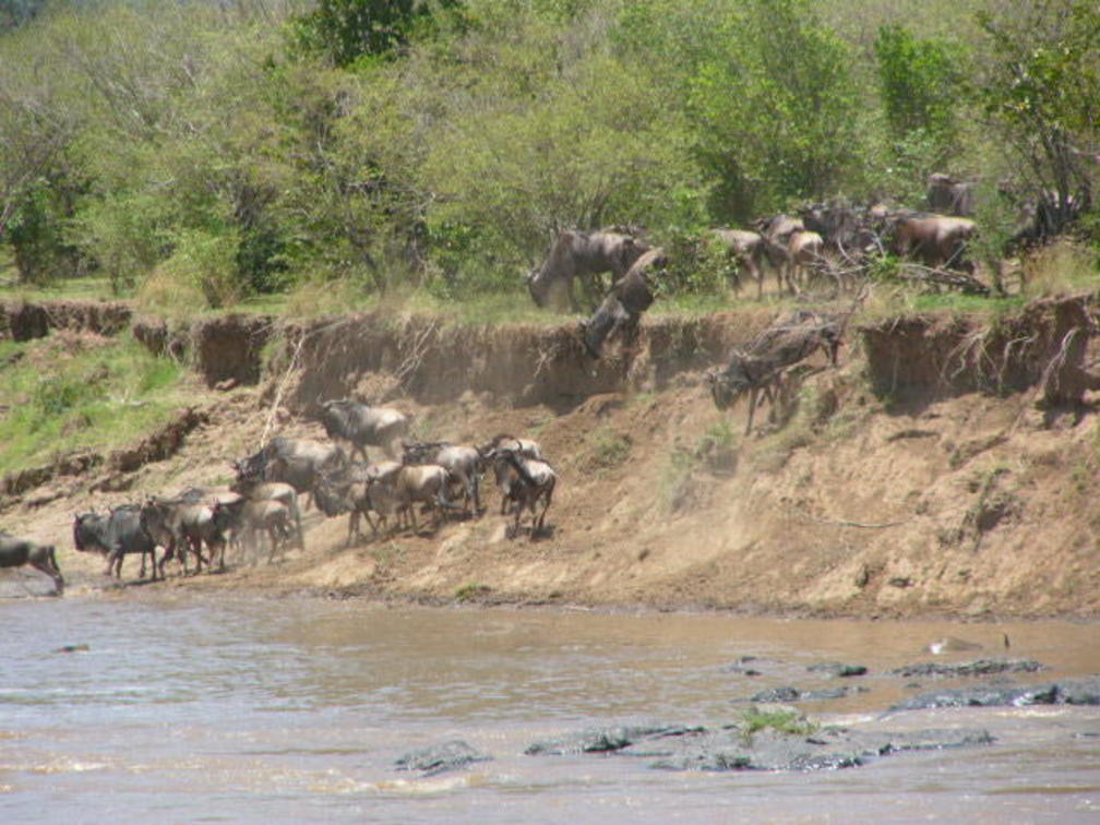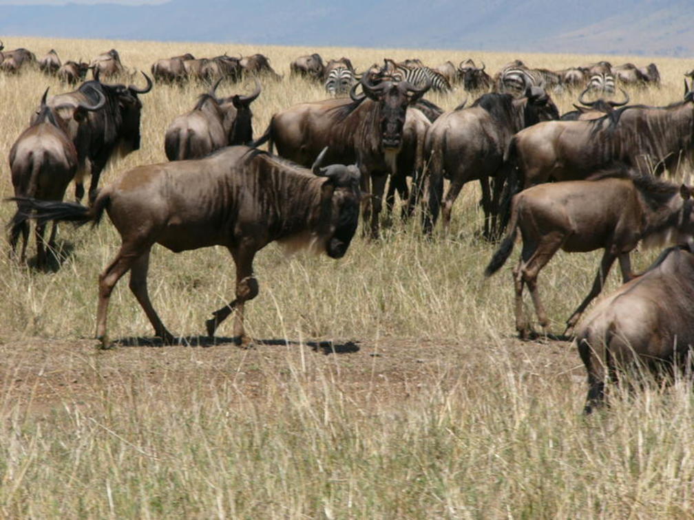 The wildebeest herds congregate during the wettest part of the year in the short-grass plains of the Serengeti ecosystem, where there is sweet new grass and rainwater pools. There they give birth - most of the females calving within a few week in what has become known world over as "The Rut". Early in the dry season, the pools in the short-grass plains dry up and the wildebeest stream en masse through the longer plains and o n to the Western Corridor. As their food supply diminishes, the herds move into the northen Serengeti woodlands and the Masai Mara. Zebra follow similar, but not quite identical, movements. Thomson's gazelle also migrate, but o nly as far as the edge of the woodlands. The routes taken by the herds vary from year to year but the general pattern of the migration remains the same.