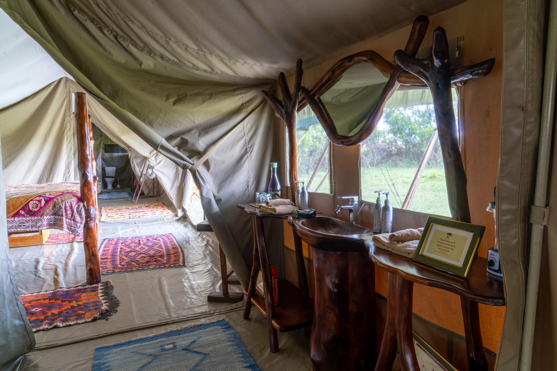 The four large, double tents are en-suite, each accommodating 2 people. Furnished in traditional safari style, Each has a spacious bathroom comprising of flushing toilets, hand basin and enclosed bucket showers area, where wonderful hot showers can be enjoyed. Each tent has a beautiful verandah that overlooks over the Masai Mara plains, where plenty of wildlife roam day and night.