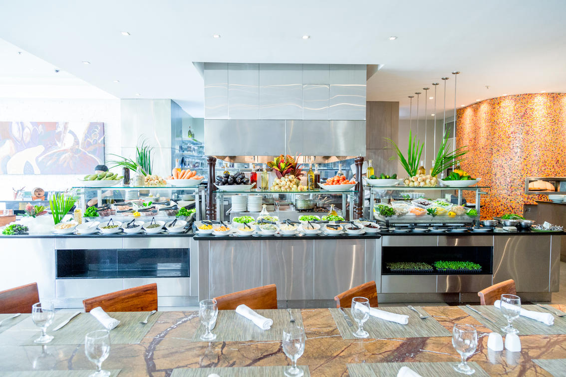 Always open, always delicious. Promising quality and affordability. The Market is open 24 hours for breakfast, lunch, dinner and late night dining. You can build your own sandwich, pasta, pizza or gourmet burger. A large selection of salads, carpaccio and ceviche is also available. The beautiful terrace overlooking our pool and gardens is perfect to enjoy it around the clock. The modern ambiance and lively exhibition kitchen are the perks of this new concept restaurant.