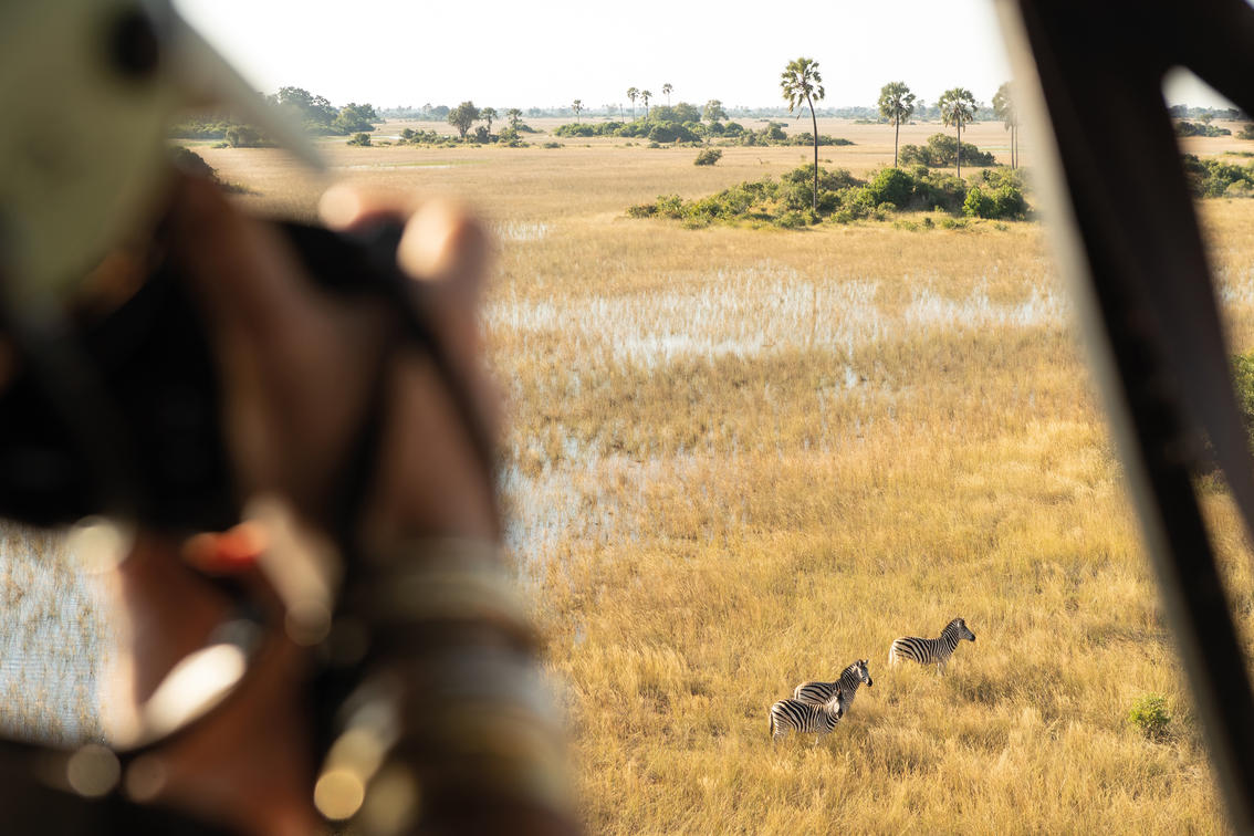 We remove the doors from the helicopter for an even better photographic experience while flying over some of the most remote, uninhabited, and wild areas of the Okavango Delta. Scenic flights are conducted any time of day, with keen photographers usually preferring the golden hours of the early morning or late afternoon. While some guests prefer flying during the siesta period to not miss other camp activities.