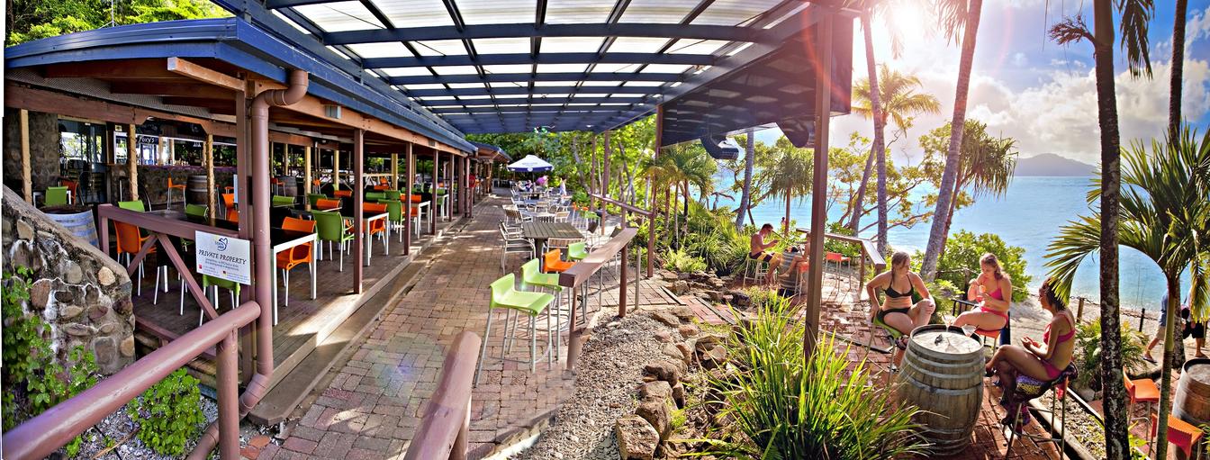 Foxy’s is a large Pacific Islands bar with a 70s structural theming, situated right on the beach front, about 100 metres from the resort buildings, south of the main creek (on the way to Nudey Beach). Foxy’s Bar features the best beachside view for sunset, pool tables, a dance floor and big sports TV.