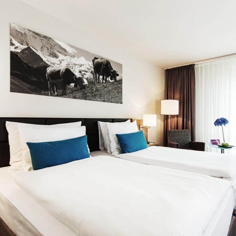 Die Zimmer sind ausgestattet mit Klimaanlage, gratis WLAN, einer Kaffeestation, einer Minibar (gegen Gebühr) sowie einer kostenfreien Flasche Wasser. Ausserdem erwartet Sie das Kissenmenü, die ganz persönliche Wahl des passenden Schlafkomforts. Der Zugang zu unserem SMART Shop an der Réception ist 24h möglich, weitere Produkte für Ihren Aufenthalt können hier gegen Gebühr erworben werden.