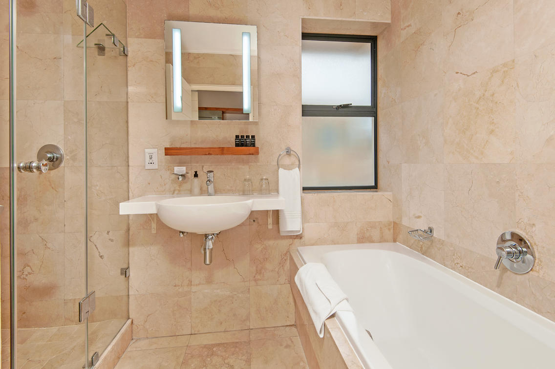 Room sizes from 28m²)size and include a lounge area, kitchenette with kettle, toaster, microwave, tea & coffee making facilities, en-suite bathroom with separate bath & shower and heated towel rails. Living area with plasma TV and satellite television (selected channels), Wi-Fi, air-conditioning. Mini Bar available.