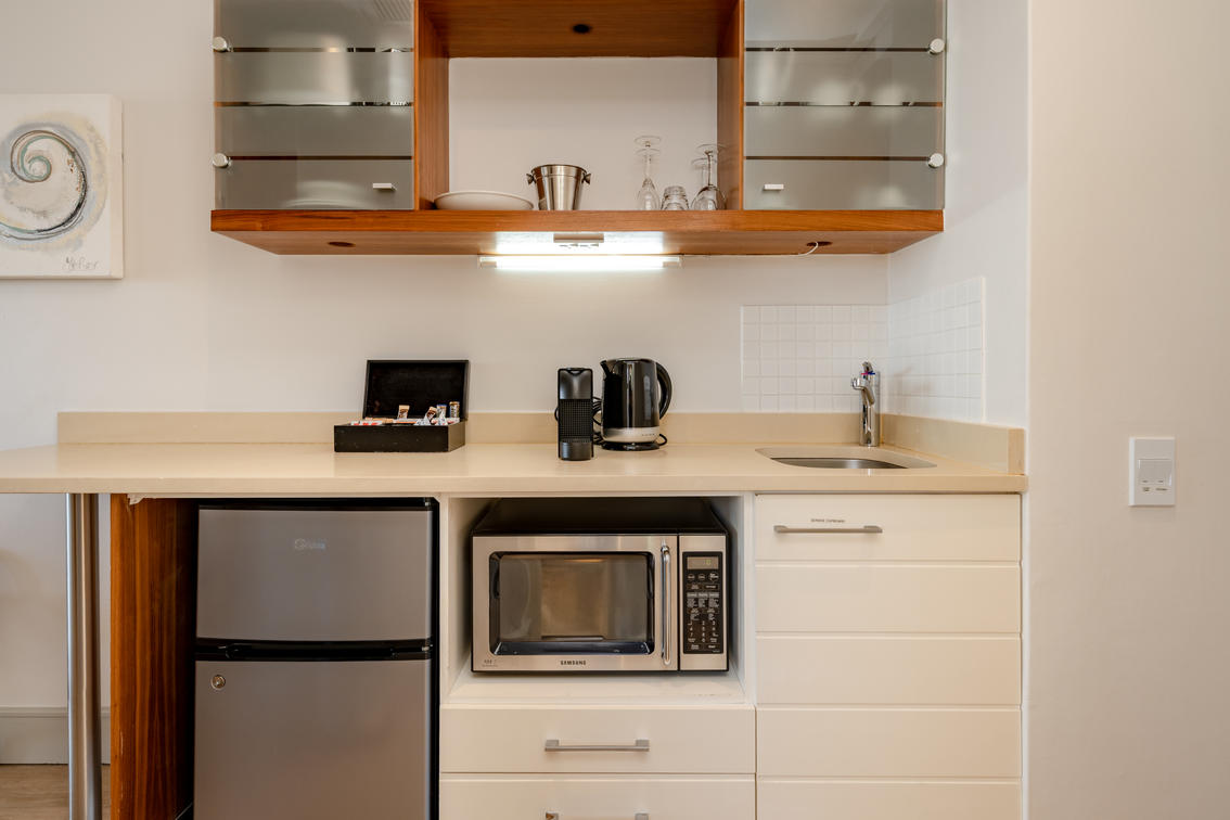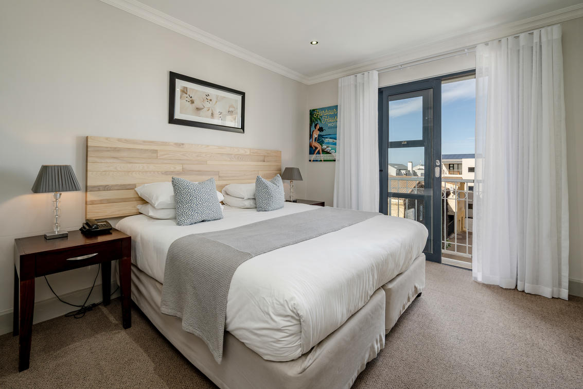 Spacious rooms featuring partial views from the lower levels at the front and the third floor at the rear of Harbour House New Wing. Rooms are fitted with a kitchenette and feature a balcony with chairs.