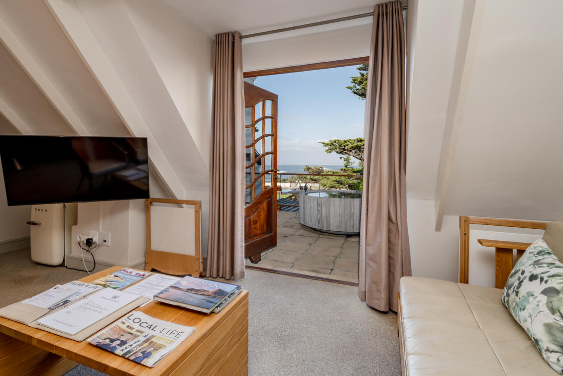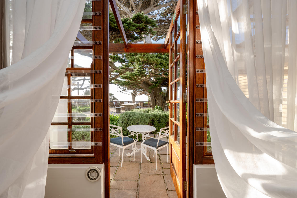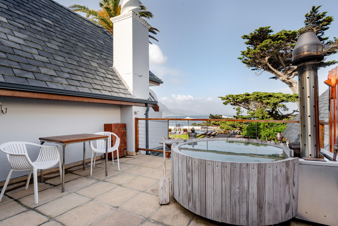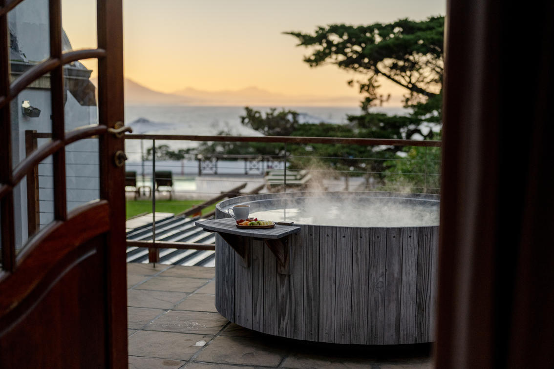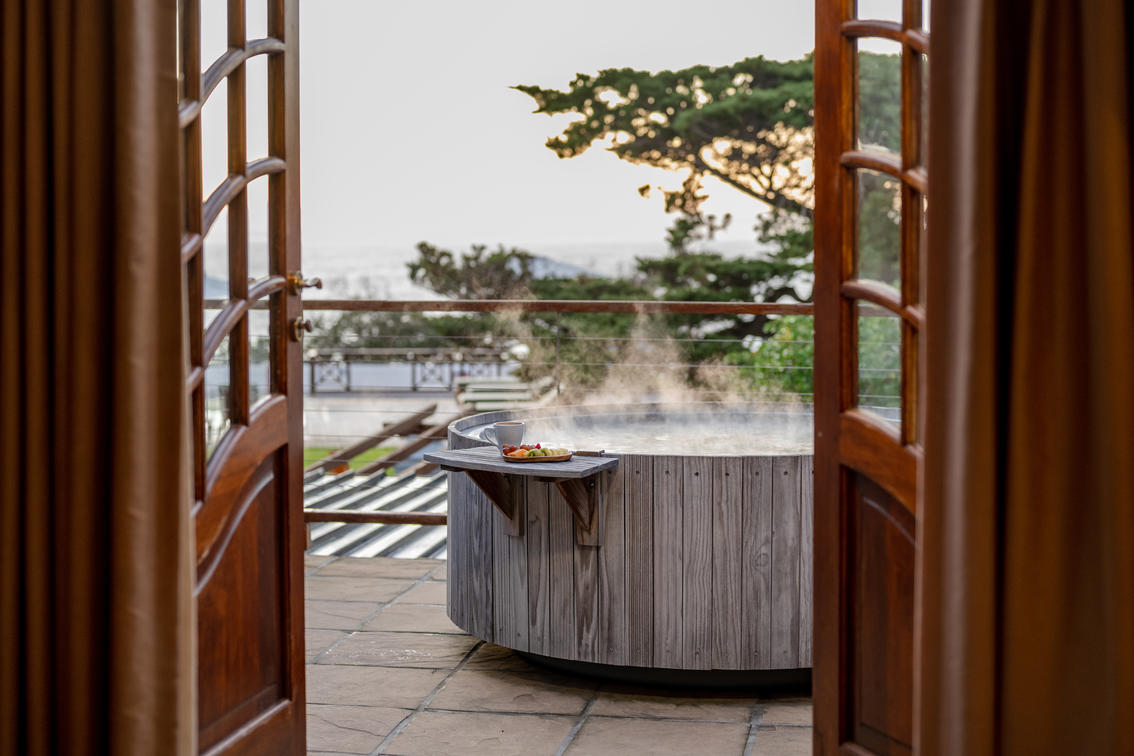 Located in the restored Manor House, this lavish, open-plan Romantic Room is accentuated by stylish décor and quality finishes. Millstone floors, walk-in showers and lavish freestanding solid-cast bath accentuate the feeling of comfort and luxury. Featuring your own private Wood-Fired Hot Tub on your balcony with breath-taking views of the ocean and whale-watching bay.