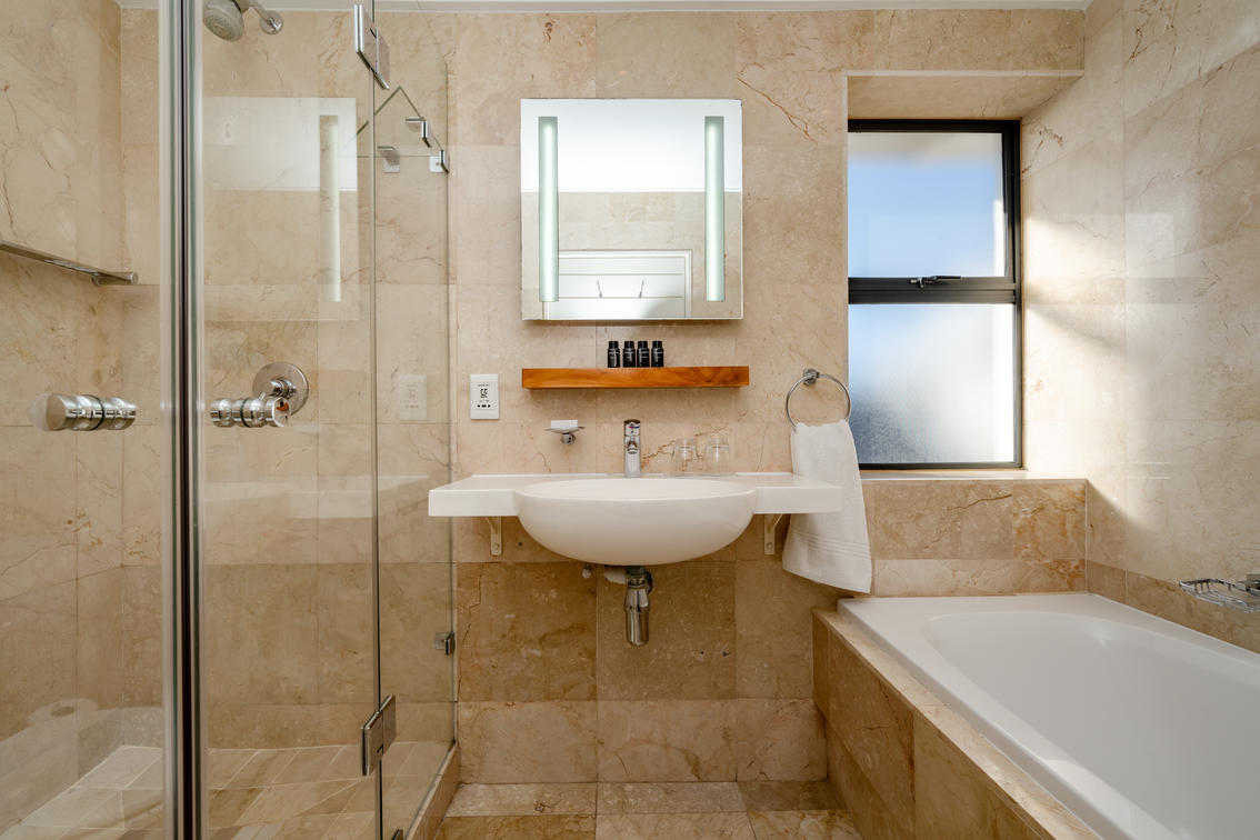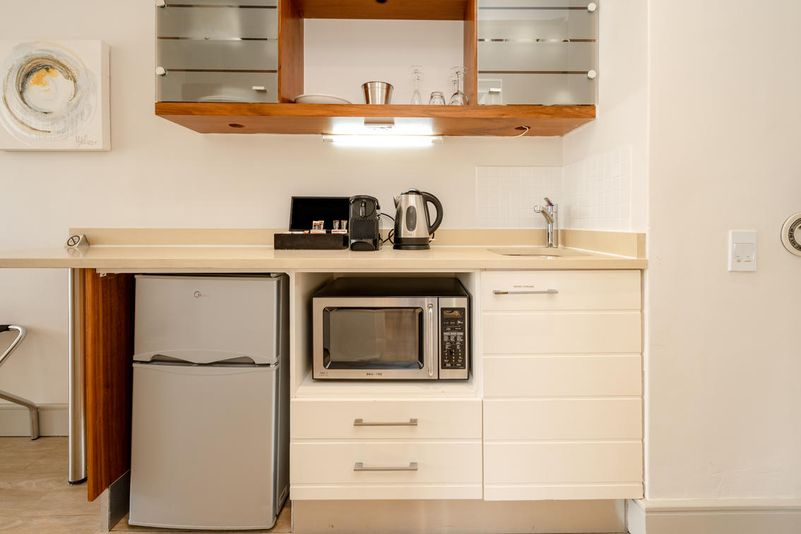 Rooms are 37 m² in size and include a lounge area, kitchenette with kettle, toaster, microwave, tea & coffee making facilities, en-suite bathroom with separate bath & shower and heated towel rails. Living area with plasma TV and satellite television (selected channels), Wi-Fi, air-conditioning. Mini Bar available.