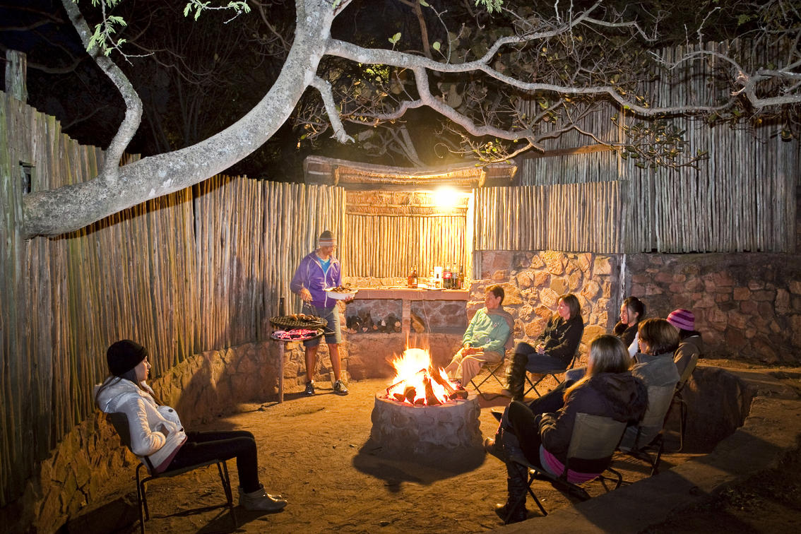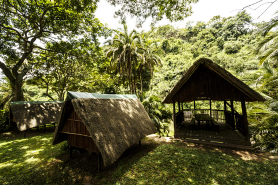 A 10-sleeper self-catered camp located by the river in the Gwahumbe Valley offers the ultimate in a rustic African bush experience. It consists of 5 A-frame reed and thatch huts on stilts which each have two mattresses snugly fit to accommodate 2 guests.