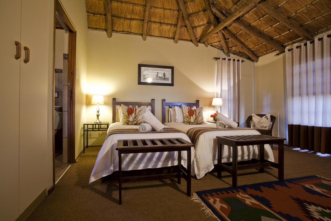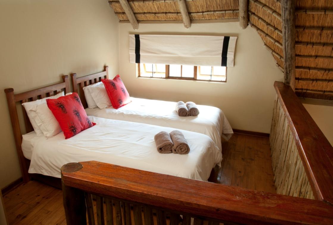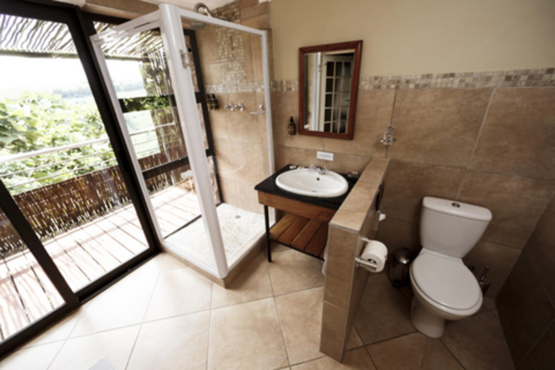 A 6-sleeper chalet with kitchen facilities. Three en-suite bedrooms, lounge area, fully-equipped kitchen, braai boma, private rim-flow plunge pool & deck overlooking the Gwahumbe Valley.