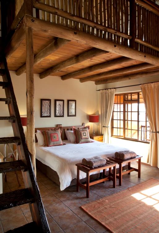 A 6 to 8-sleeper chalet with kitchen facilities. Three en-suite bedrooms & an upstairs loft, lounge area, fully equipped kitchen, private rim-flow plunge pool, braai boma & veranda with incredible views of the Gwahumbe Valley.