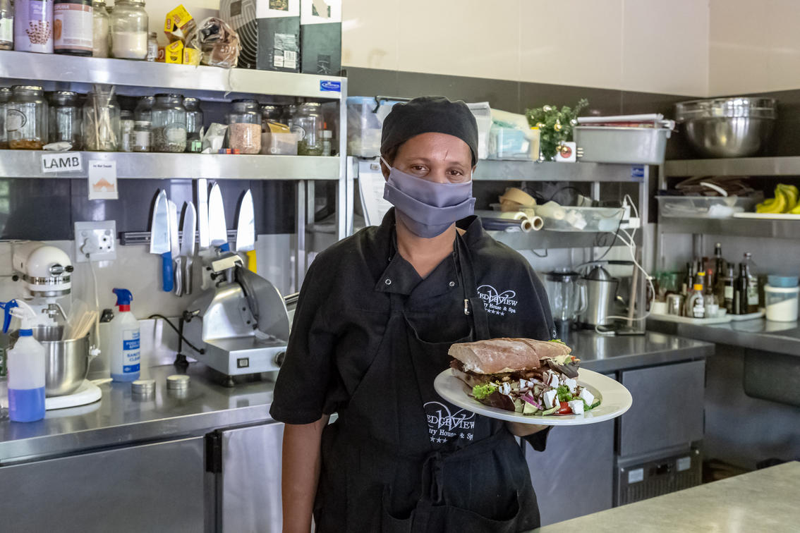 On our à la Carte, for starters, we offer a range of Home Made soups, a Venison Carpaccio, fried calamari or a Vineyard Platter or our popular Home Made "Dutch" Bitterballen or our local Duck Liver Paté. As mains, you'll find favourites like Free Range Sirloin Steak chips and salad, Indonesian Style Chicken Sateh with rice or fries and Asian side salad, Venison Loin Steak, Local Fish, and a Ravioli as a Vegan/Vegetarian option and for desert a lovely Home Made Chocolate Brownie with ice-cream or Malva Pudding.