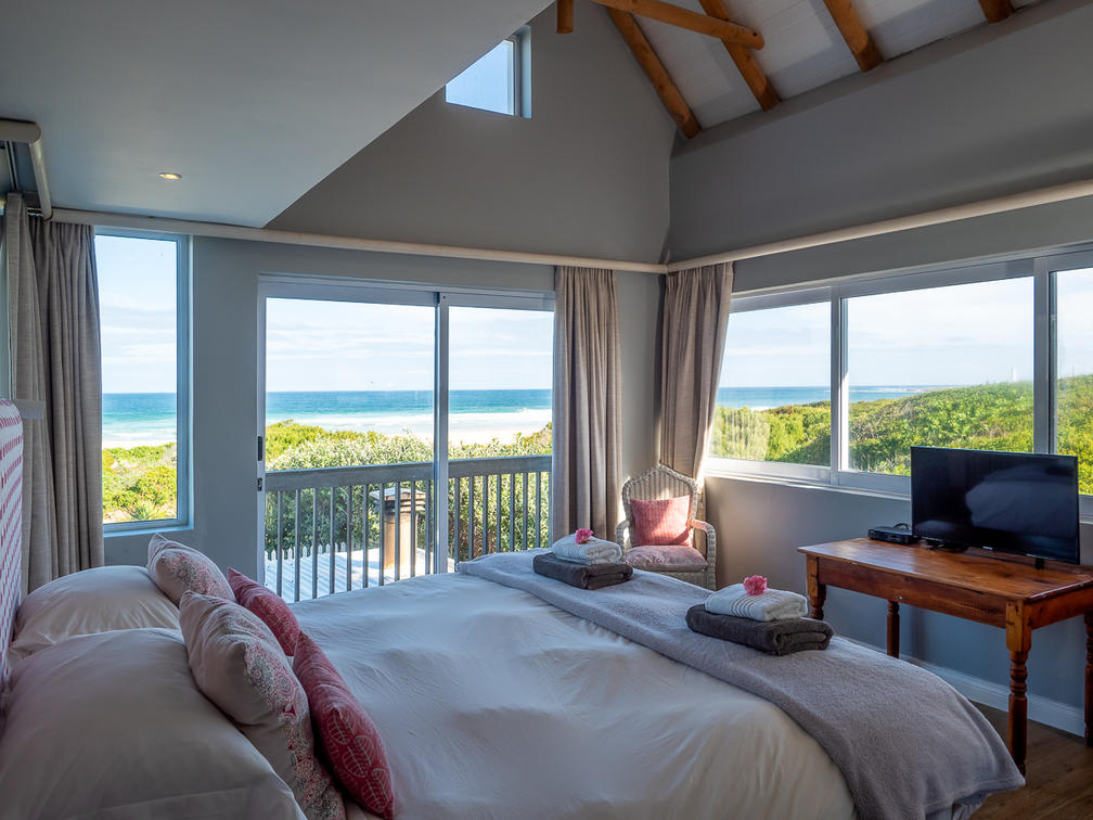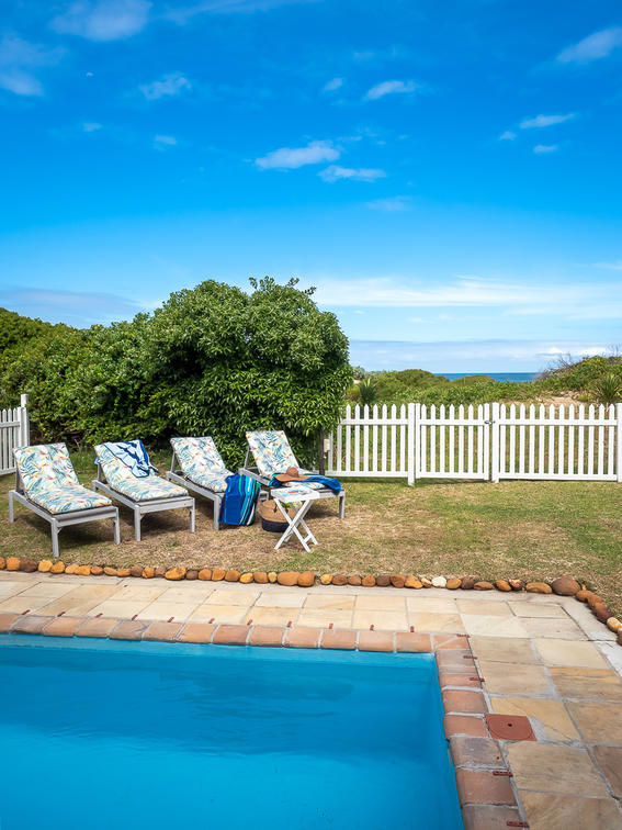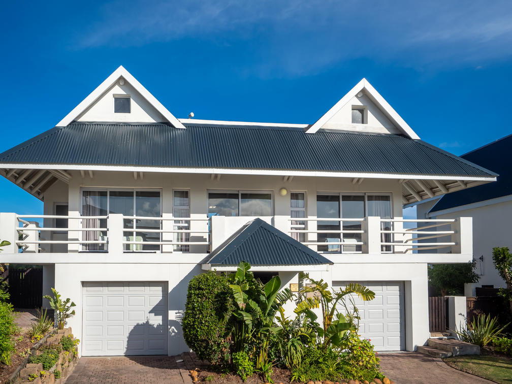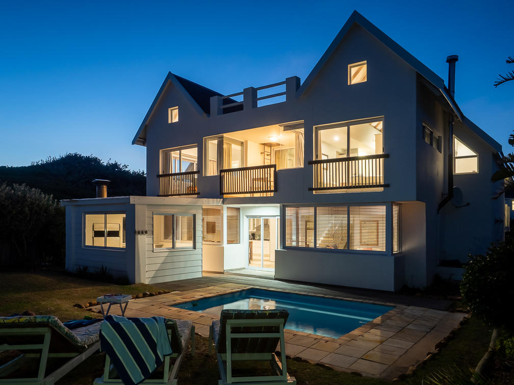 This 4 bedroom villa brings a slight avant-garde touch to seaside living as warm wooding furnishings stand out beautifully against modern kitchens and other contemporary touches such as brightly painted feature walls and wooden balustrades. The gardens exhibit their own swimming pool, braai and sheltered outdoor dining areas, easily melded with indoors simply by opening the broad sliding windows. Indigenous hedges surrounding the gardens and provide a natural barrier against wind. Those not fearsome of heights can climb the exterior ladder to a viewing deck on each roof. Twin rooms are located in the first floor of the villas while double rooms offer panoramic sea views from the top story. In addition there are two single garages and a guest bathroom located in the entrance hall.