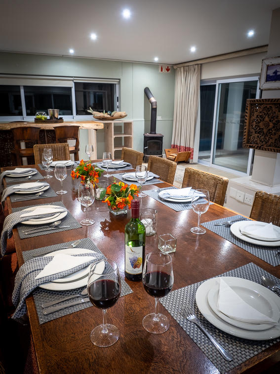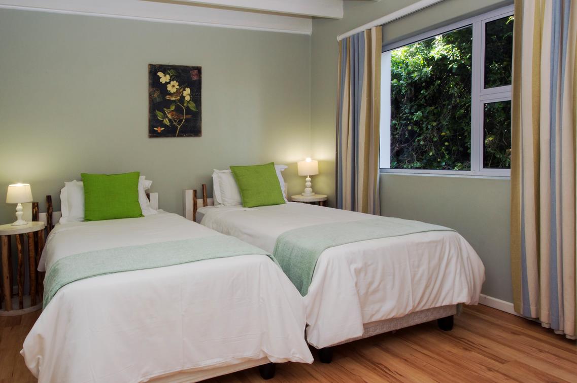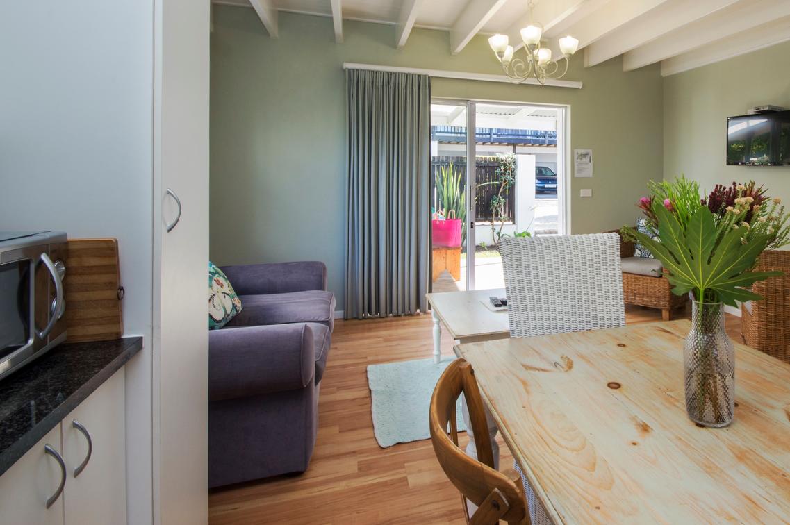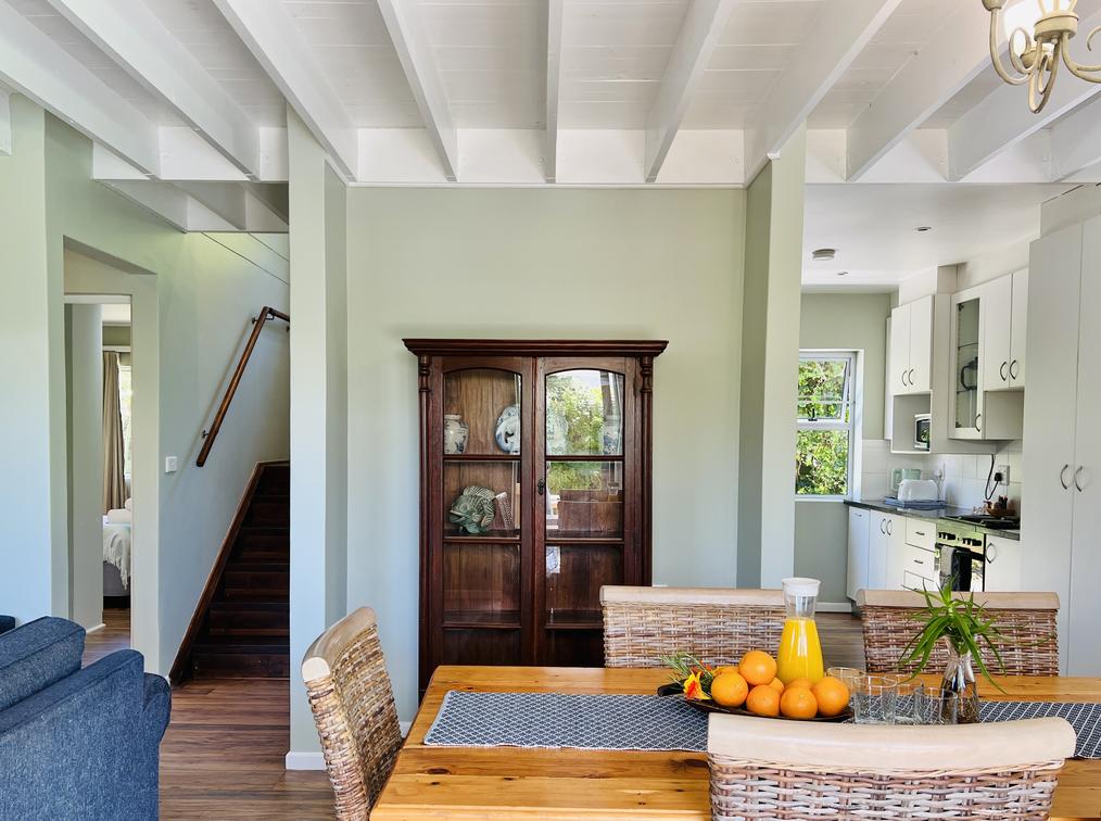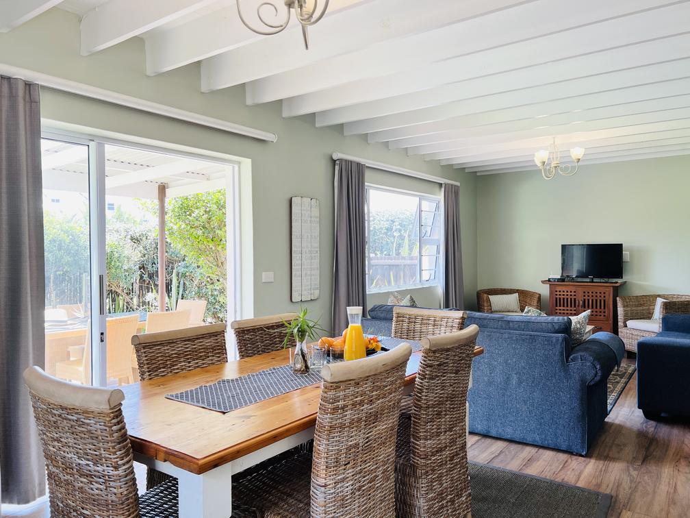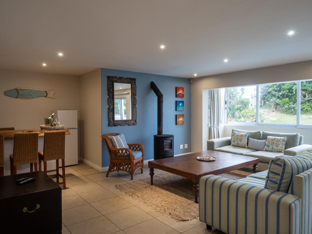 Each cottage is walking distance from the beach.Spacious open plan kitchen , lounge and dining area.Sliding door in living room leads to a shaded patio with a private garden and braai. 3 bathrooms. 2 double rooms and 1 twin bedroom.No sea view.All meals, including breakfast, available at our Joe Fish Restaurant.