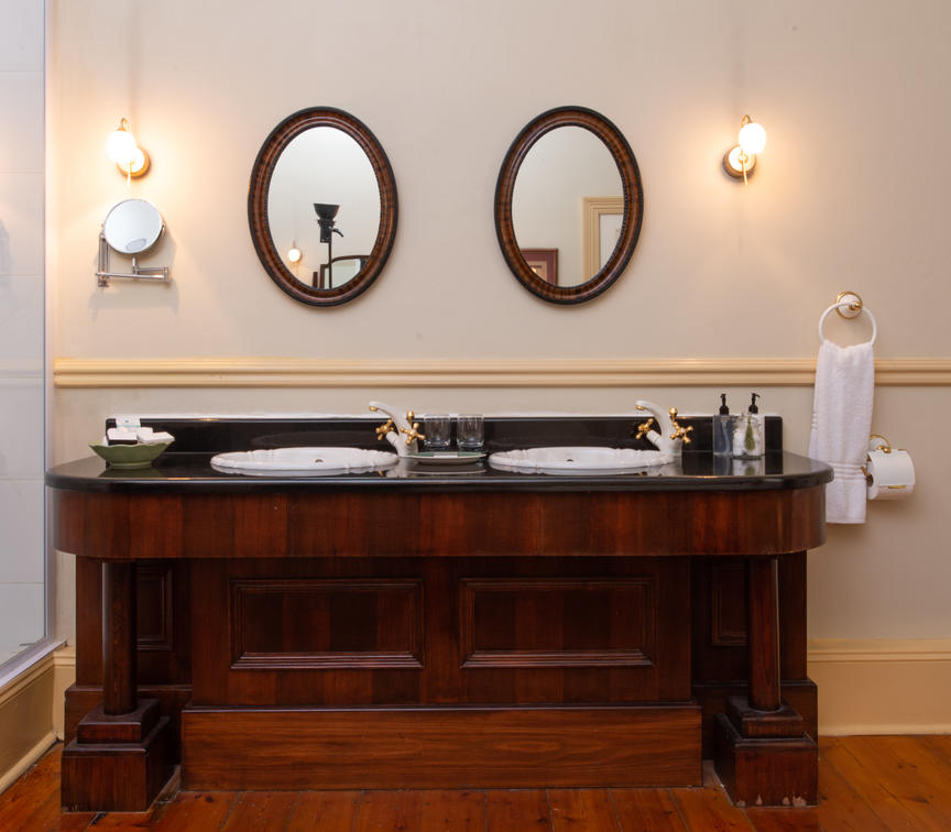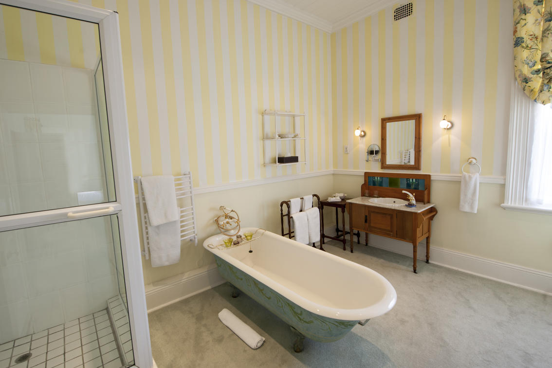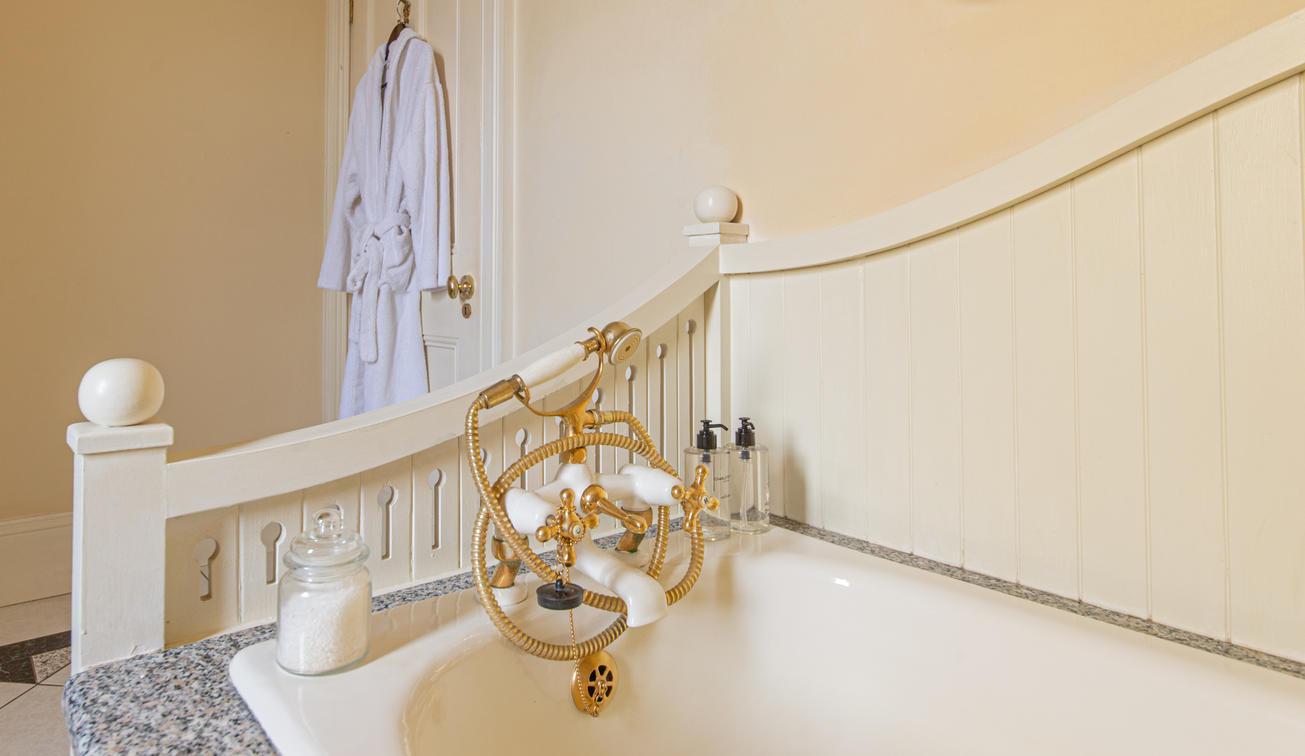 En-suite Victorian bath and large separate shower.