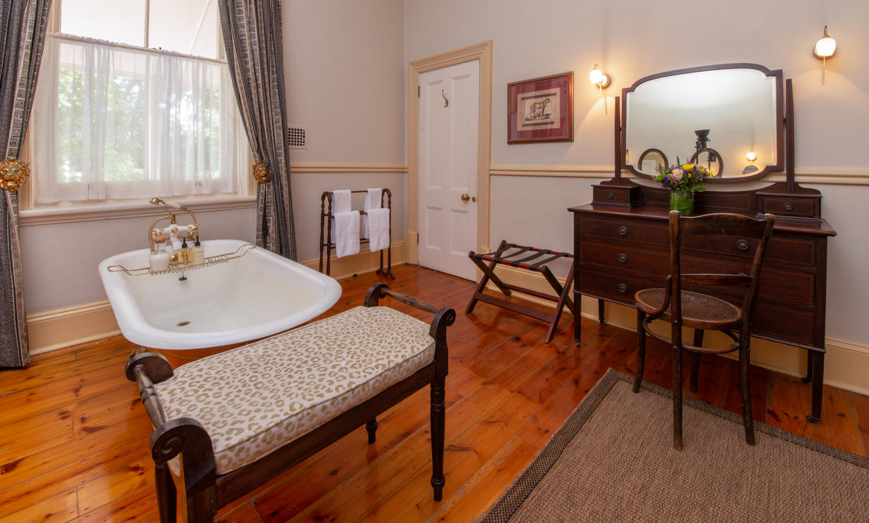 En-suite ball and claw bath and large separate shower.