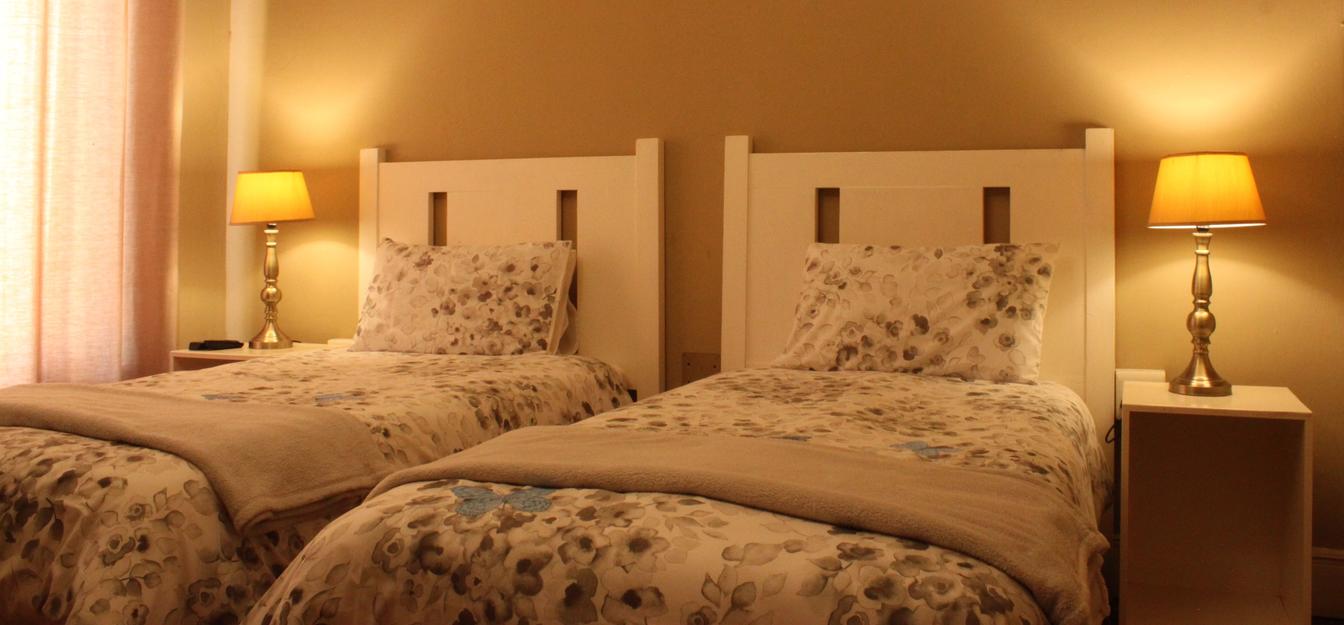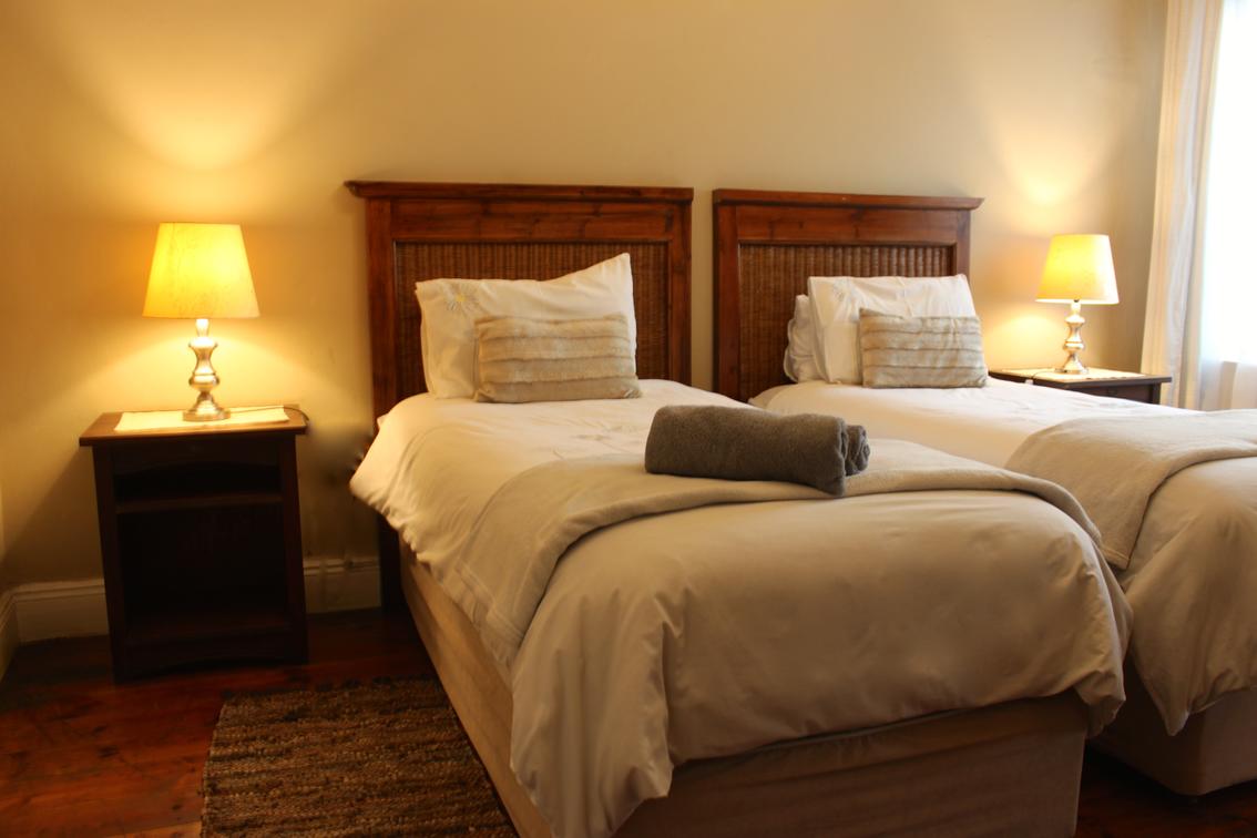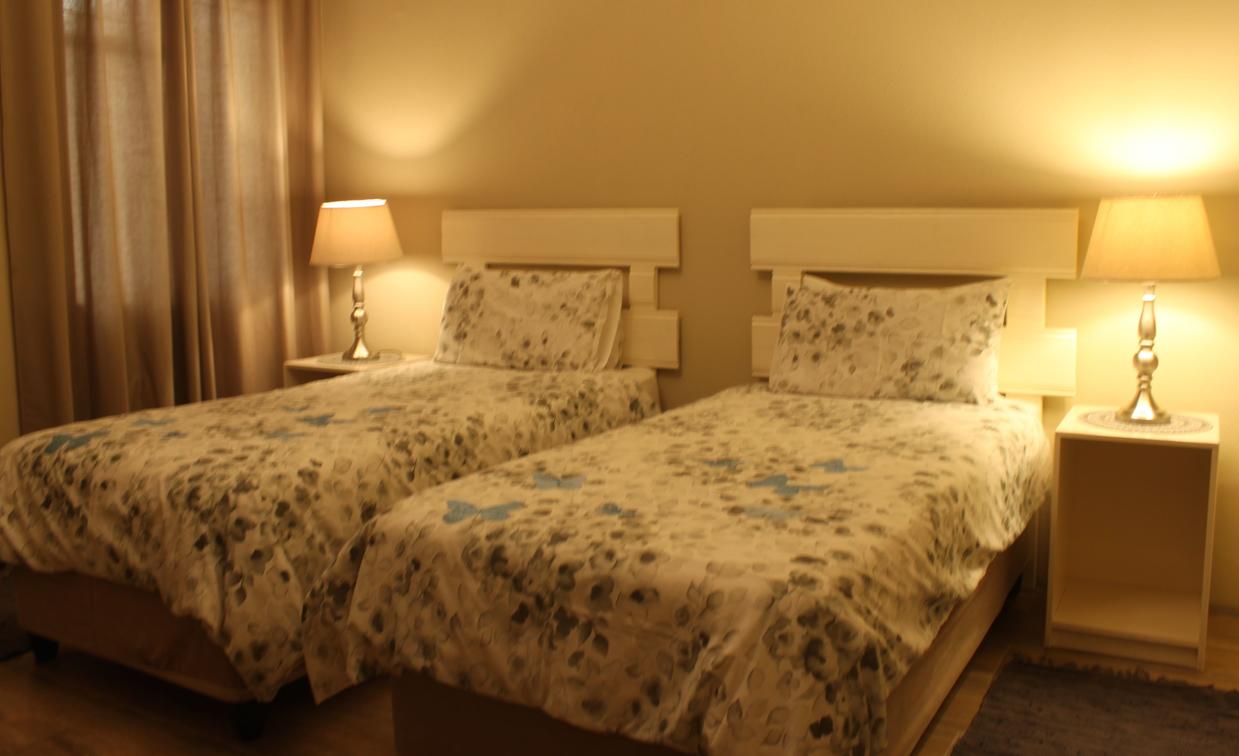 Two single beds in spacious room, tastefully furnished in a rustic style. It has comfortable, good quality beds, antique cupboard for clothes hanging space and a chair. A modern twist added for your convenience with a private neat clean shower, toilet and basin. Flat screen TV with DSTV channels. Communal tee/coffee/water station available in lounge/dining area.