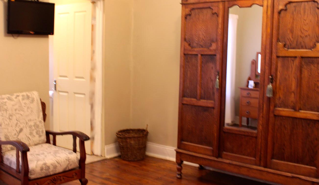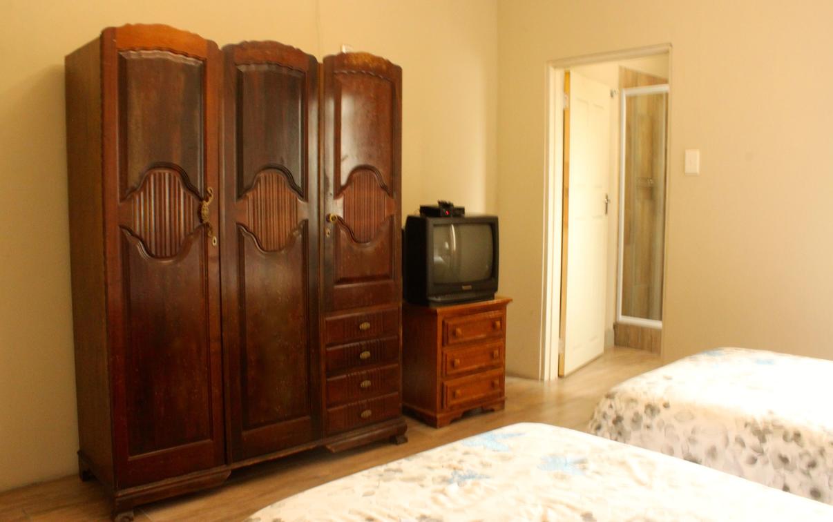 Double bed in spacious room, tastefully furnished in a rustic style. It has comfortable, good quality bed, antique cupboard for clothes hanging space and a chair. A modern twist added for your convenience with a private neat clean shower, toilet and basin. Flat screen TV with DSTV channels. Communal tee/coffee/water station available in lounge/dining area.