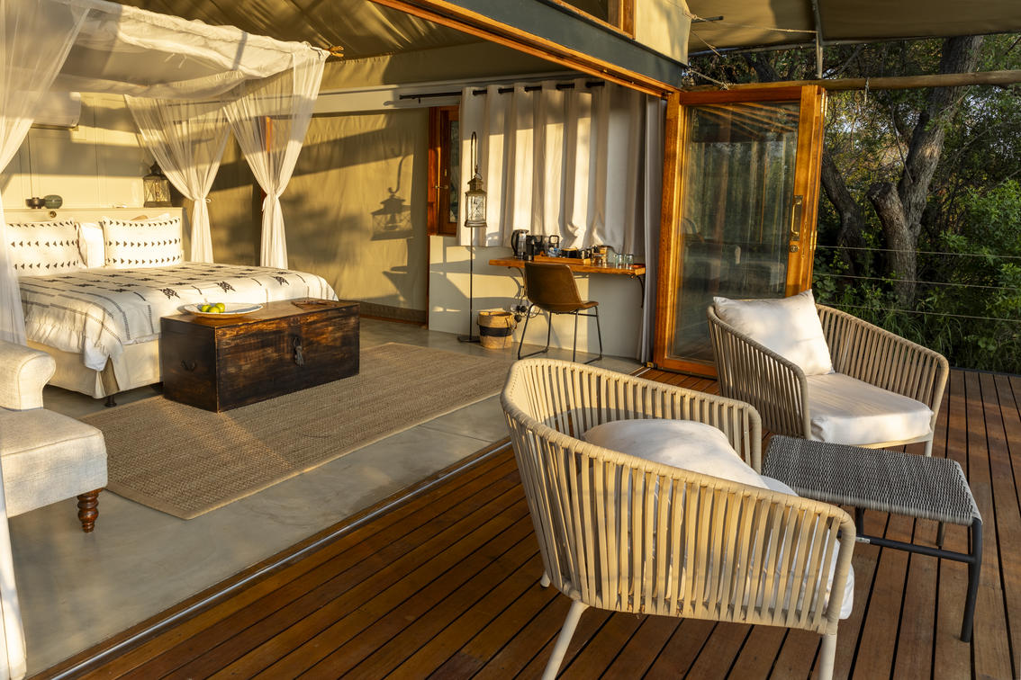 Nestled alongside the tranquil Matlabas River in Marataba, this exclusive-use Residence offers sweeping vistas of the landscape and its majestic mountains. This is a family nature retreat where you set your own safari agenda, spend leisurely afternoons observing wildlife along the riverbank, enjoy sundowners and memorable alfresco dinners. You have four separate Luxury Tents for ultimate privacy with a main area that includes a lounge, dining area, kitchen, an open bar, a welcoming fireplace, a boma facility, and a pool. Your residence butler takes care of the details, and your personal chef arranges gourmet meals, and everything in-between. With everything taken care of you can relax and enjoy all the wonders of a safari at Marataba.