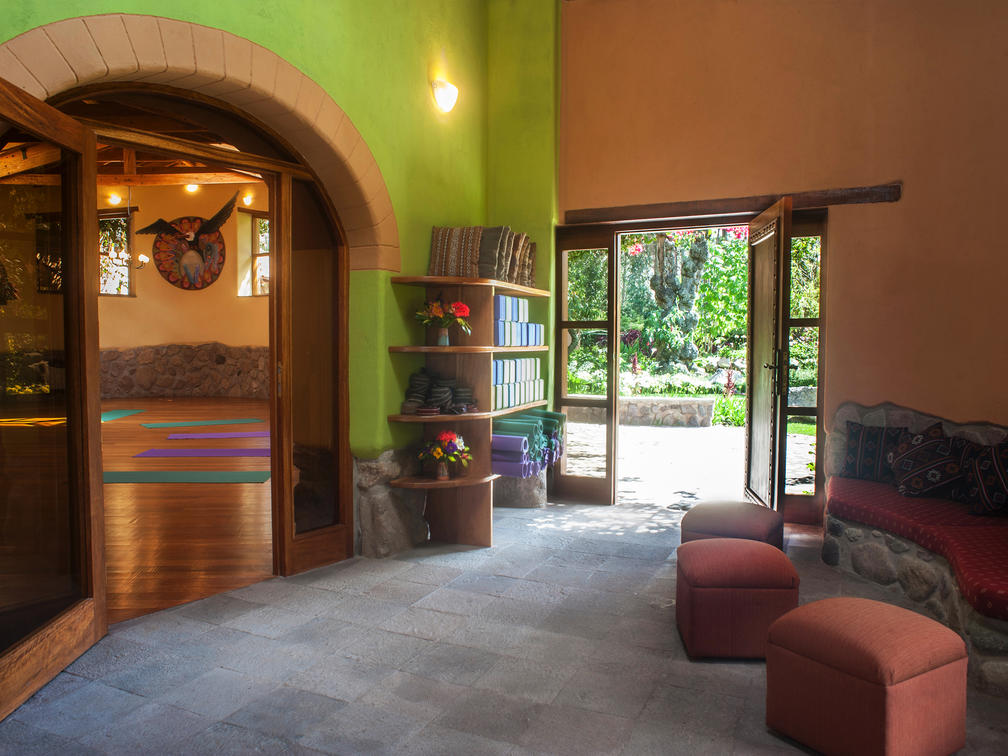 Our two beautiful sunlit yoga studios with hardwood floors are fully equipped with mats, blankets, straps, blocks and accessories. The spacious Kuntur Runtu studio generously accommodates fifty-five yoga mats, and the smaller studio, Yogawasi, fits twenty-five yoga mats. Heating and sound systems are available in both studios.