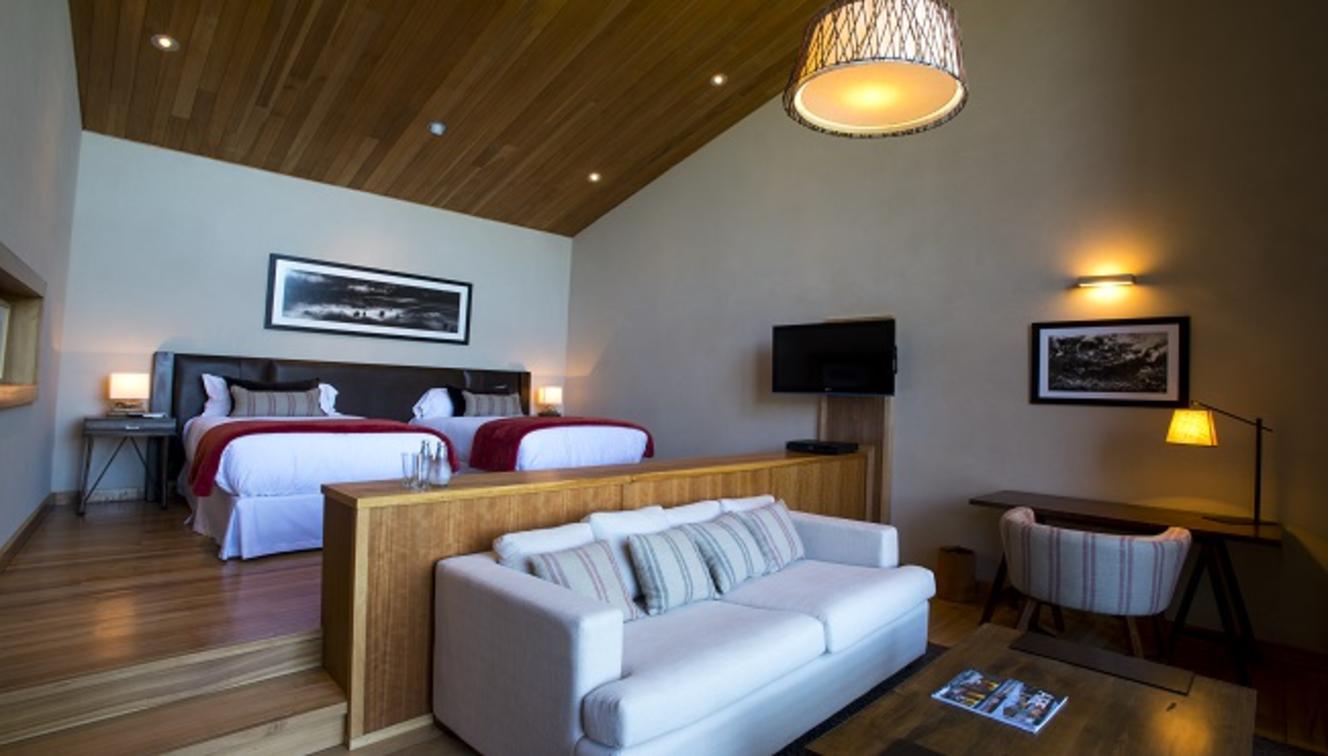 This amazing and spacious suite is 82 square metres, and has a terrace which is 11 square metres. Views of the FutaleufĂș River can be seen from this room. Guests can choose between 2 single beds or 1 king size bed. This needs to be confirmed by the hotel.