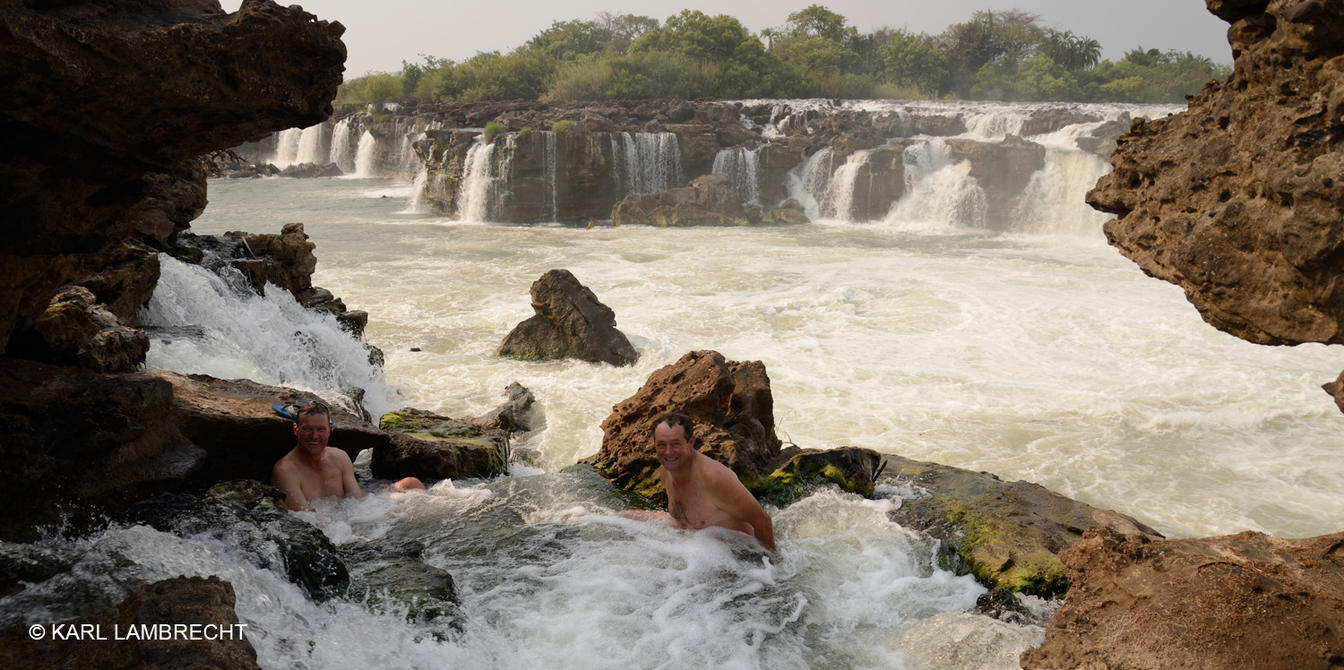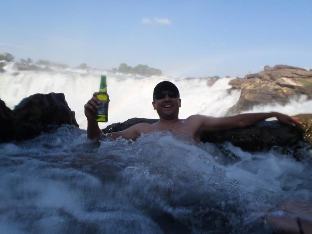 Grab a cold drink and relax in the natural spa baths formed by the Falls.