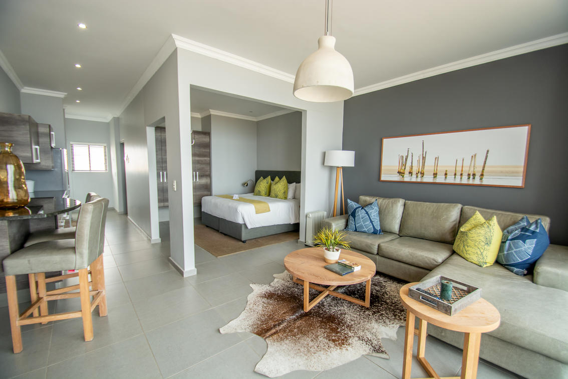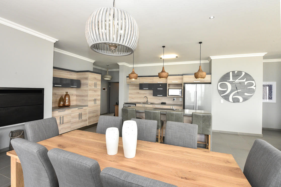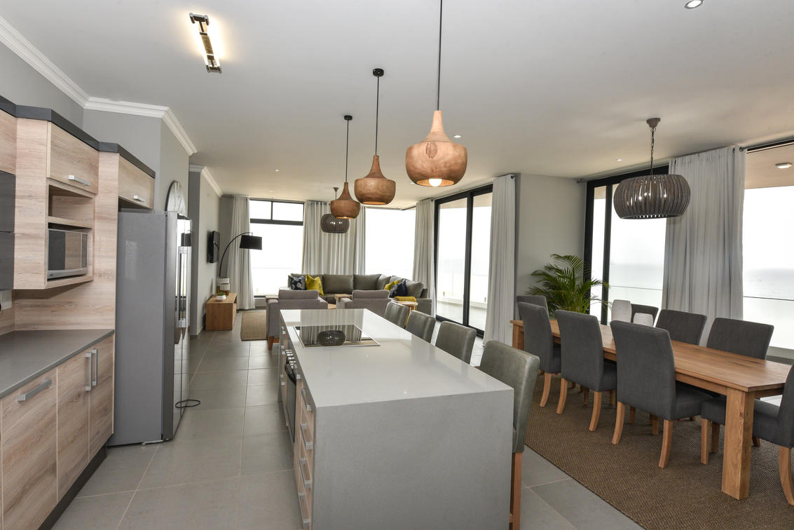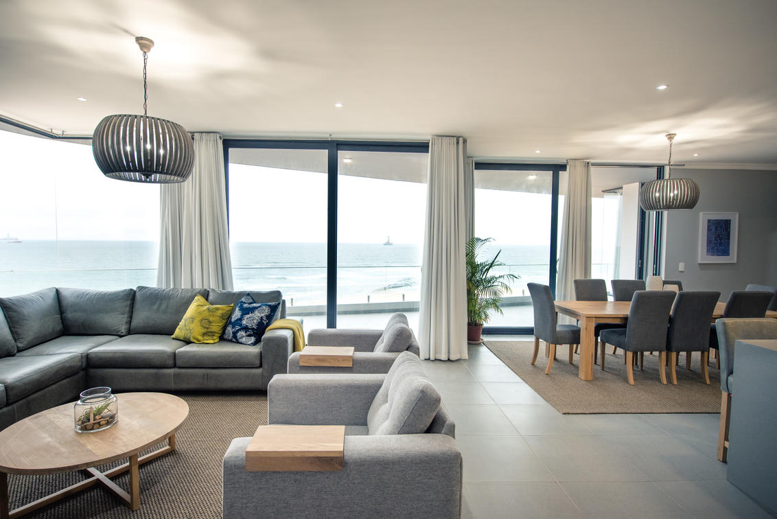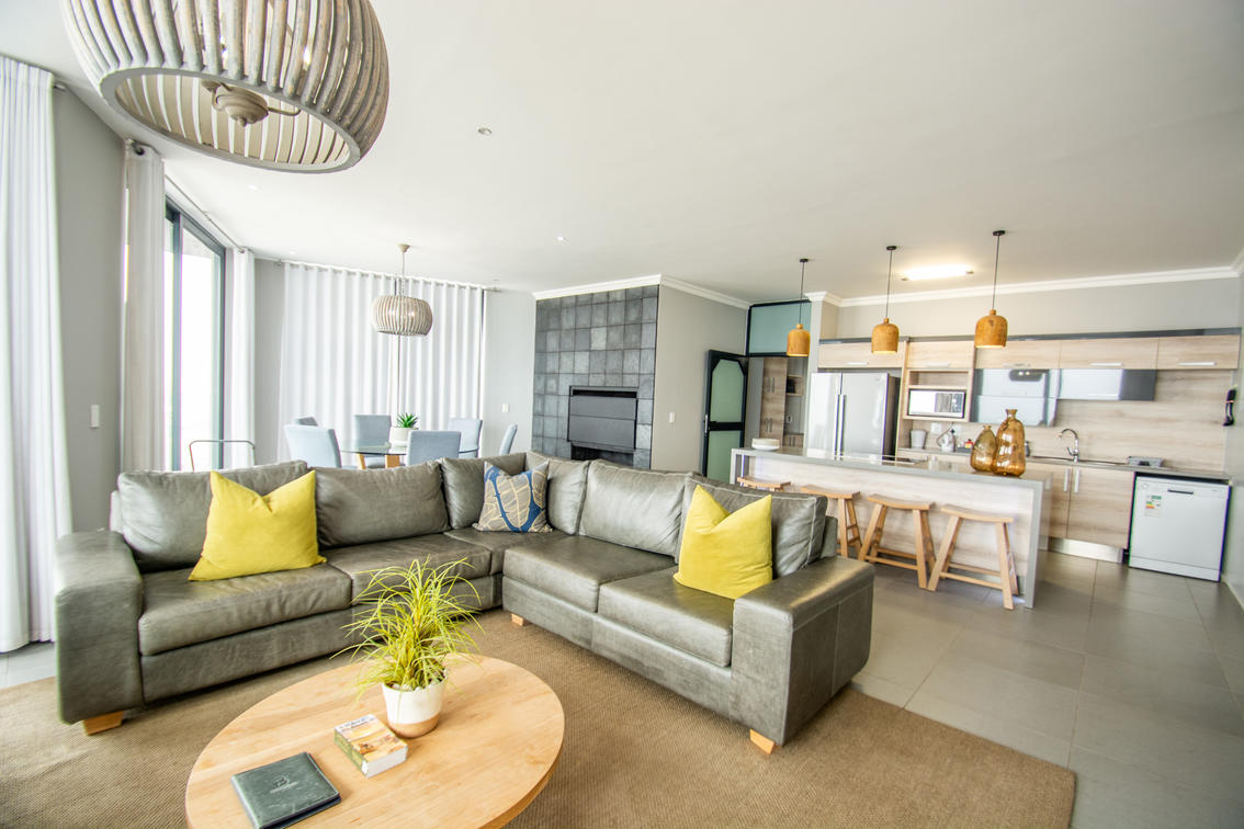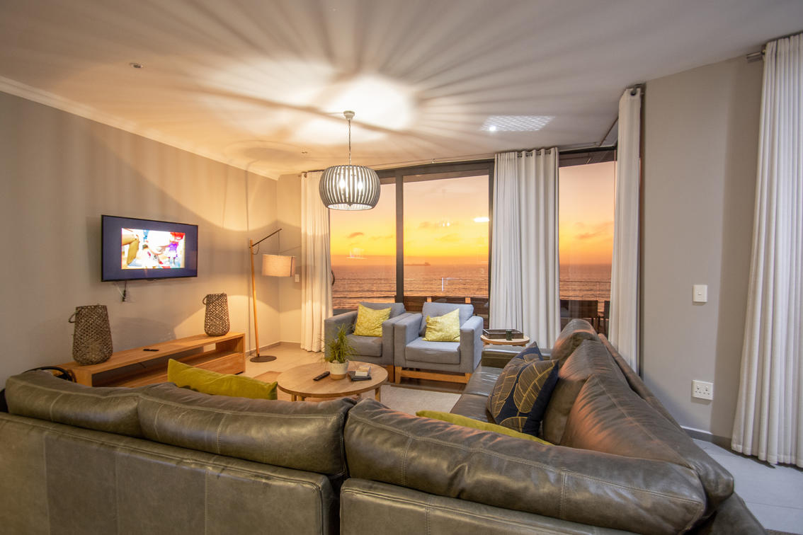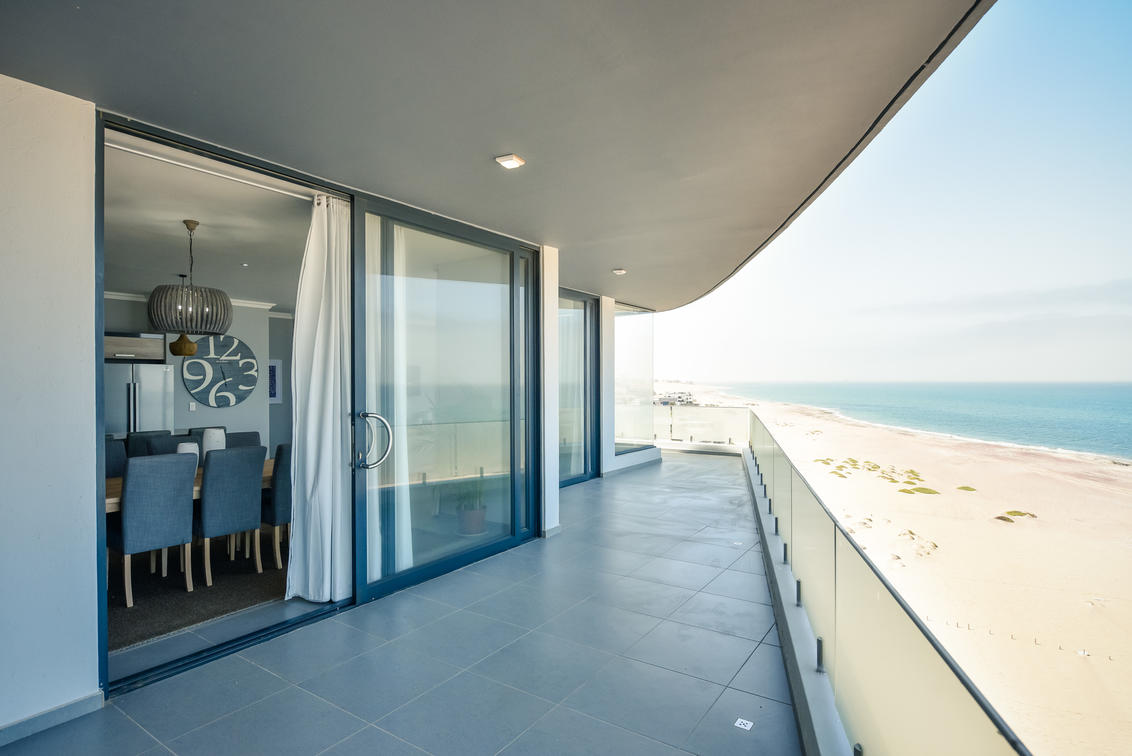 This stunning penthouse offers views of the Atlantic ocean and the Namib dunes. 3 beautiful en-suite bedrooms, a spacious lounge, dining room, island kitchen and a large patio with views that will make your stay!