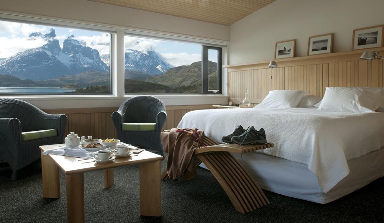 The 36 Cordillera Paine rooms measuring 28 square meters feature views of Macizo del Paine.