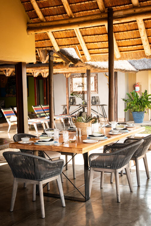 The Main Lodge House features a large patio and grassed viewing area, a swimming pool and open-plan kitchen/bar as well as indoor and outdoor dining facilities. We believe that our South African inspired cuisine is best enjoyed under African skies and we pride ourselves on regular authentic outdoor dining experiences.