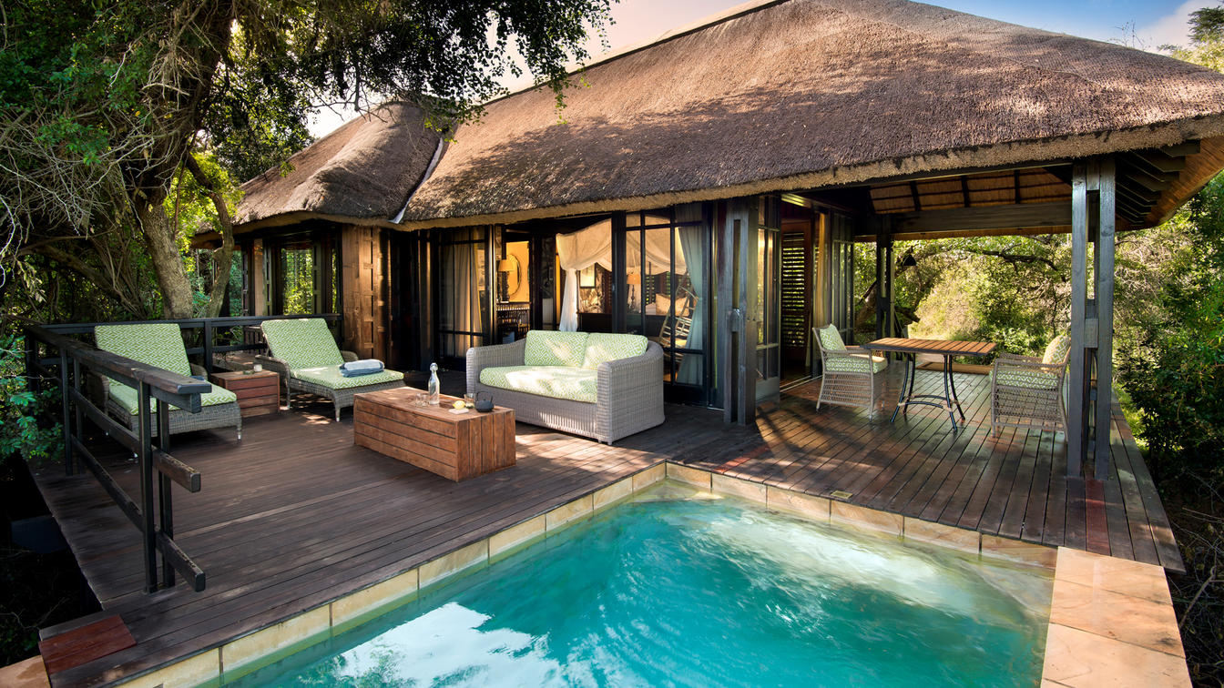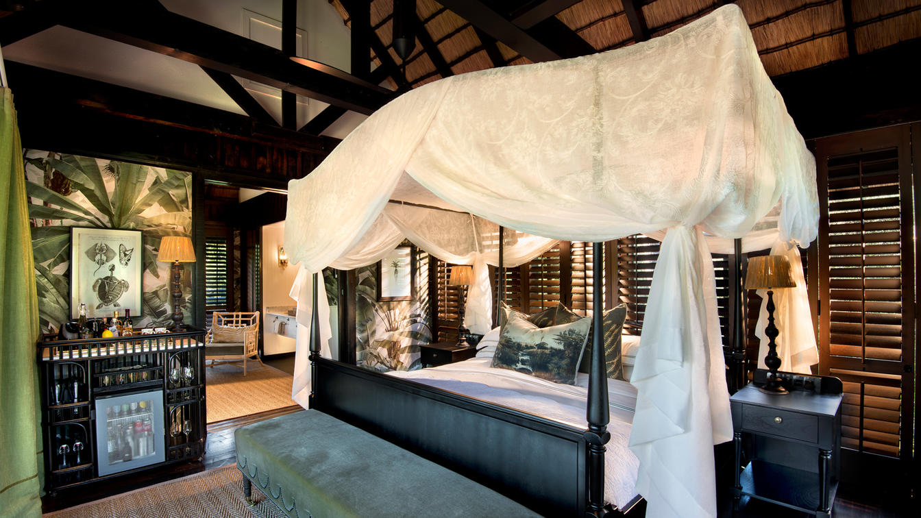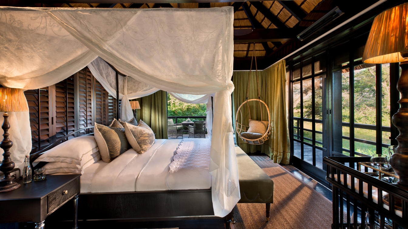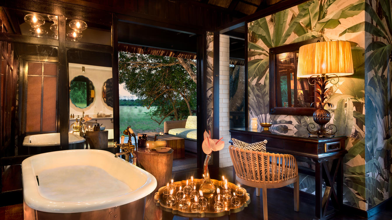 Stilted glass and thatch suites set on the edge of the rare Sand Forest. Each air conditioned suite features a spacious room, luxurious ensuite bathroom, and dressing room. The ensuite bathroom provides a sense of old world luxury, while the suiteās interiors showcase a mix of curated antiques and collectibles. Take advantage of a private lap pool and game viewing deck that overlooks a grassy meadow, where you can observe antelope grazing nearby, as well as a variety of birdlife.