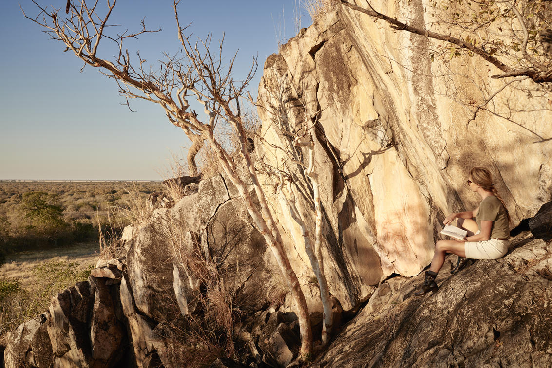 Out in the bush, where rocks rear up among stony hills you will find a collection of paintings that take your breath away. These works by Bushmen are thought to be more than 1,500 years old—beautiful images of elephant, giraffe, sable and eland antelope. Normally these types of painting might be found hidden in caves, but here, unusually, they are out in the wide, open landscape. No-one knows what materials the bushmen used, but the paint is thought to be a mixture of snake venom, blood and plant juices.