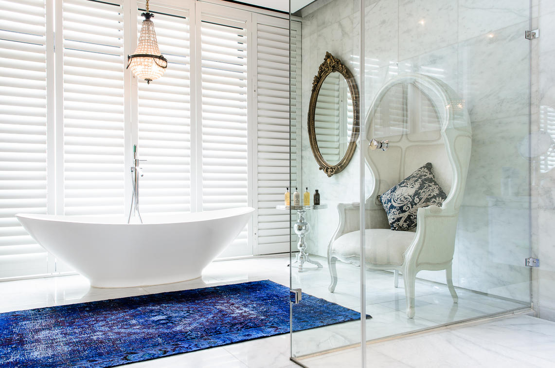 Sure, the four-poster day bed is fit for happy honeymooners who wish to slumber beneath the stars, but there’s no need to wait for wedding bells to enjoy it. Luxury like this comes with a “Because I’m worth it” disclaimer. Inside, the four-poster mirror bed, framed by royal blue and silver fleur-de-lis wall paper, is just as special. Relax with a drink from the mini bar, whether Bombay Sapphire gin, wine or whisky, or a caffeine fix from the George Clooney-approved Nespresso machine – rusks provided.