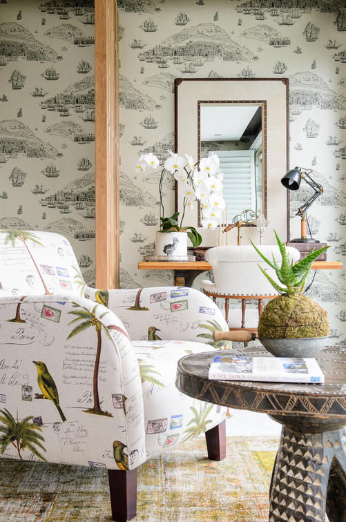 Sailing ships adorn the walls, nguni cattle rugs the floors. You’ll find a writing desk, complete with magnifying glass, a typewriter atop a sea-faring war chest, and a luxurious king-size bed to unwind into after a day of exploring the urban jungles of the Mother City.