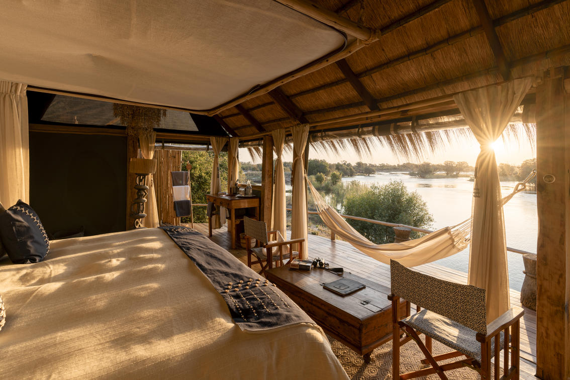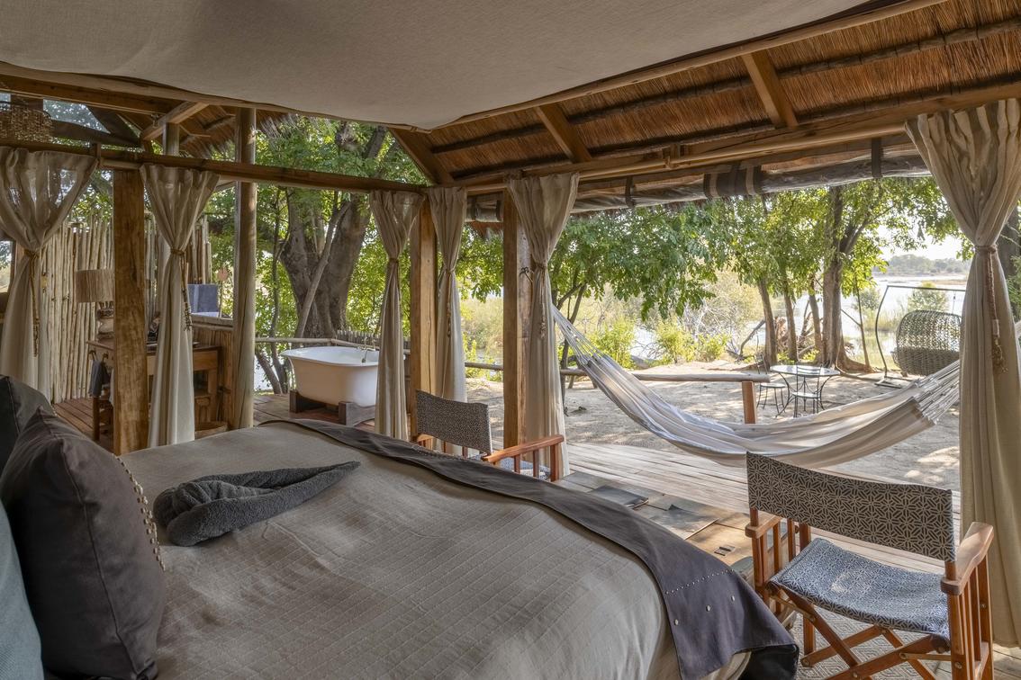 Paths made in the soft sand or along raised wooden walkways lead you to our three luxury en-suite Chalets, each tucked away in a quiet spot on Sindabezi Island. While the Chalets all share certain qualities, like private river-facing decks, luxurious interiors and double or twin sleeping options, each has its own special feature. The 'loos with a view' are a quirky feature of both Chalets 2 and 3, while the hammock in Chalet 4 is ideal for lazy afternoons. Another special highlight of Chalet 4 are the resident hippos that wallow in the river below, keeping you entertained from the comfort of your deck.